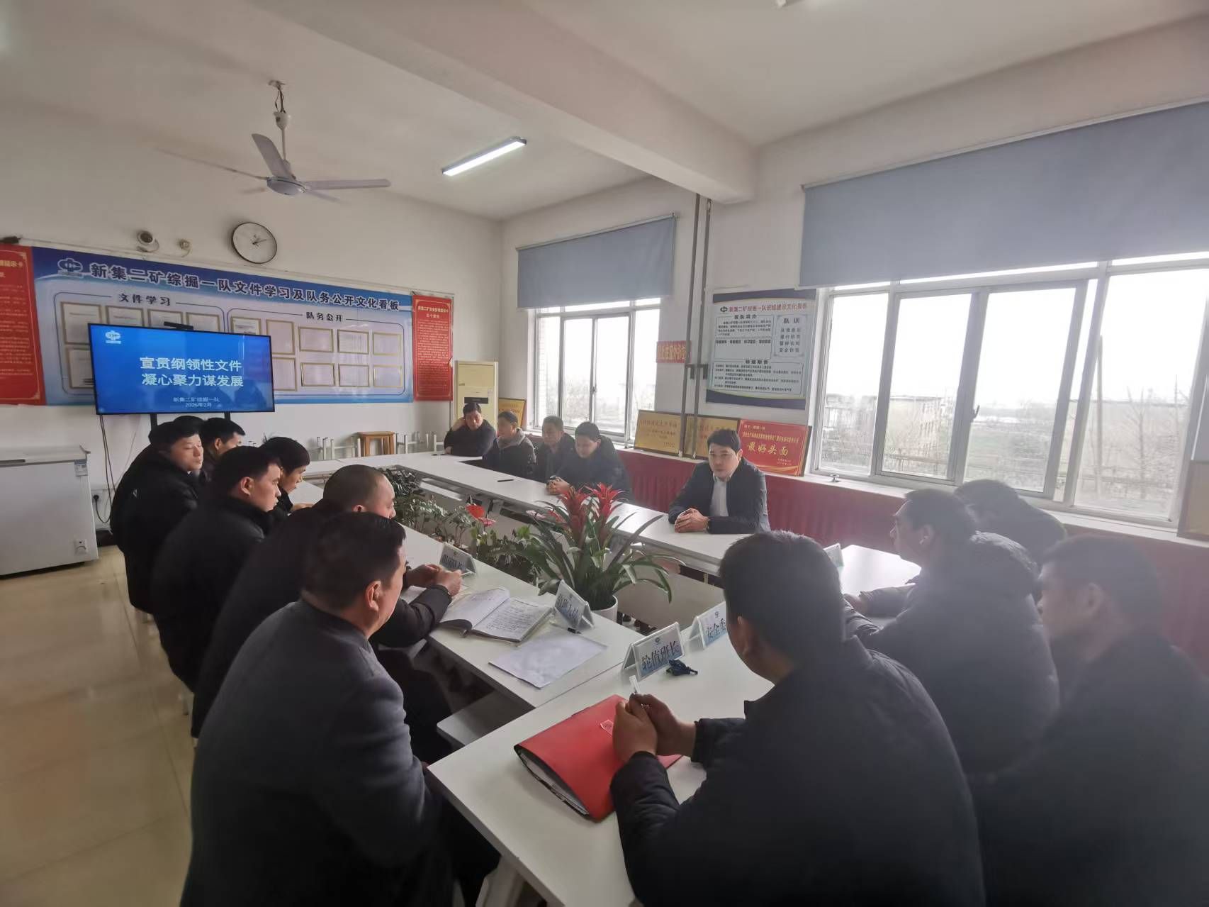 2月27日,新集二矿综掘一队利用班前会,组织职工集中学习贯彻公司及矿井年度纲领性文件,为矿井安全生产稳定保驾护航。
