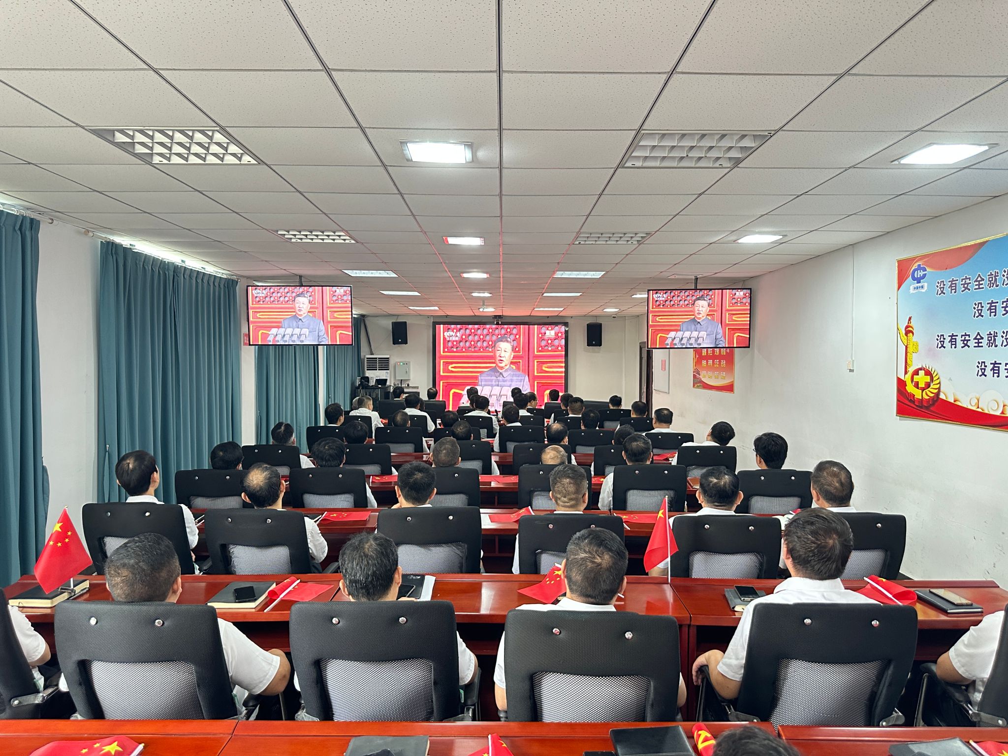 2025年9月3日,是中国人民抗日战争暨世界反法西斯战争胜利80周年纪念日。一场盛大的阅兵仪式在北京天安门广场隆重举行,向世界彰显中国维护和平的坚定决心与大国担当。为深刻感悟伟大抗战精神,凝聚奋进力量,刘庄矿业组织全体干部职工观看阅兵直播,共同见证这一意义非凡的历史时刻。