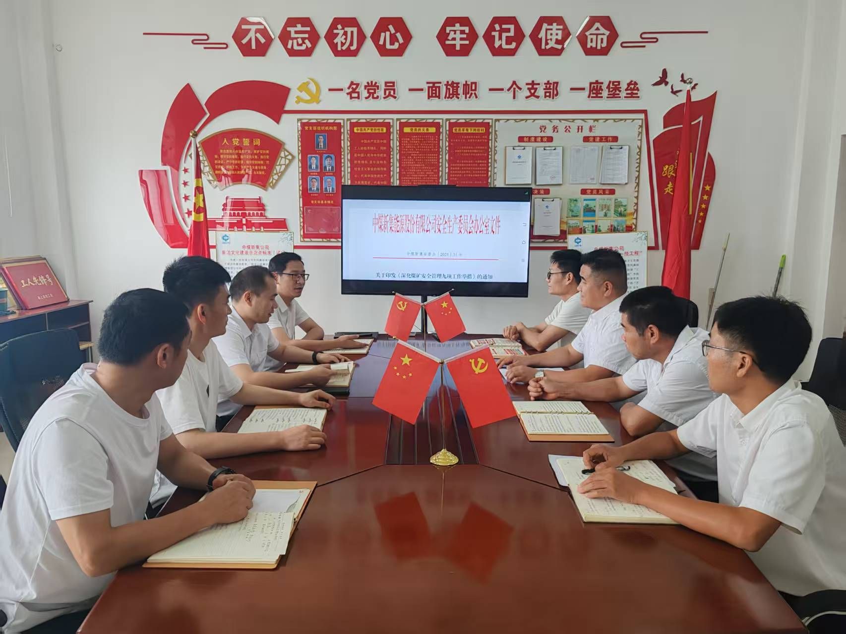 为全面压实安全生产责任,筑牢矿井安全防线,近日,刘庄矿业西区安装党支部组织跟班队长及以上管理人员,集中学习《深化煤矿安全管理九项工作举措》(中煤新集安委办〔2025〕31号)文件精神,切实将安全管理新要求、新举措,传达至基层单位、落实到施工现场。
