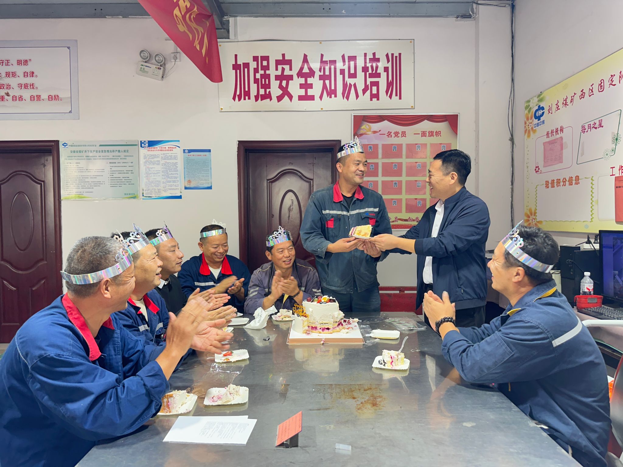 秋意渐浓,温情常在。为持续深化“我为群众办实事”实践活动,营造团结友爱、积极向上的工作氛围,切实增强团队凝聚力和员工的归属感,9月24日,刘庄矿业西区保运党支部为当月过生日的职工们精心组织了一场温馨简朴的集体生日庆祝活动。