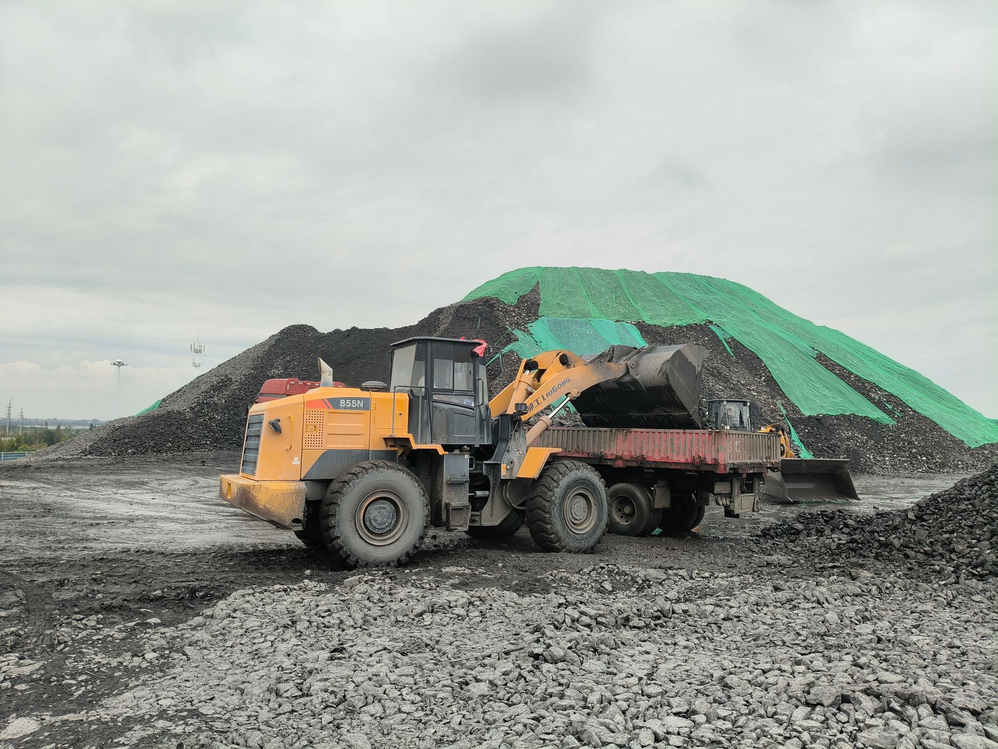 10月1日清晨,刘庄矿业东区运输区的矸石山已扬起机器轰鸣。铲车司机老苏握着方向盘的手满是老茧,额角的汗珠顺着安全帽带往下淌,他却连擦汗的空都舍不得留——刚完成一车次矸石转运,又忙着调整铲斗角度,对准堆积的矸石堆进行平整作业。