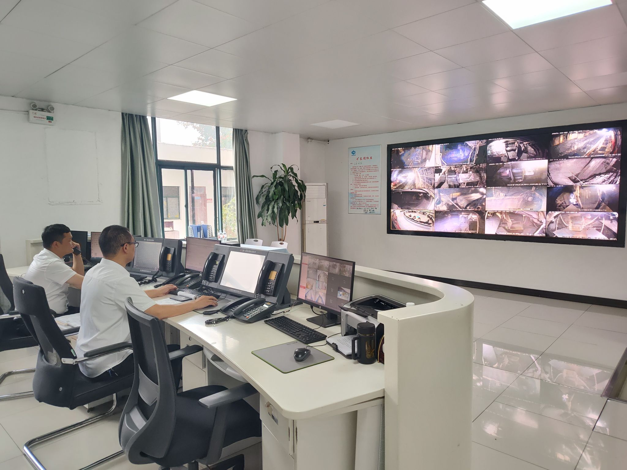 作为矿井安全生产的“神经中枢”和指挥协调的“最强大脑”,调度室的作用至关重要。节日期间,确保调度系统高效、精准、可靠运转,更是保障整个矿区井然有序的重中之重。走进刘庄矿业西区调度中心,巨大的电子屏幕上实时显示着井下各生产系统、运输环节、设备运行以及重要岗点的监控画面,数据不断跳动,电话铃声、对讲机指令声、键盘敲击声此起彼伏,一片繁忙而有序的景象。