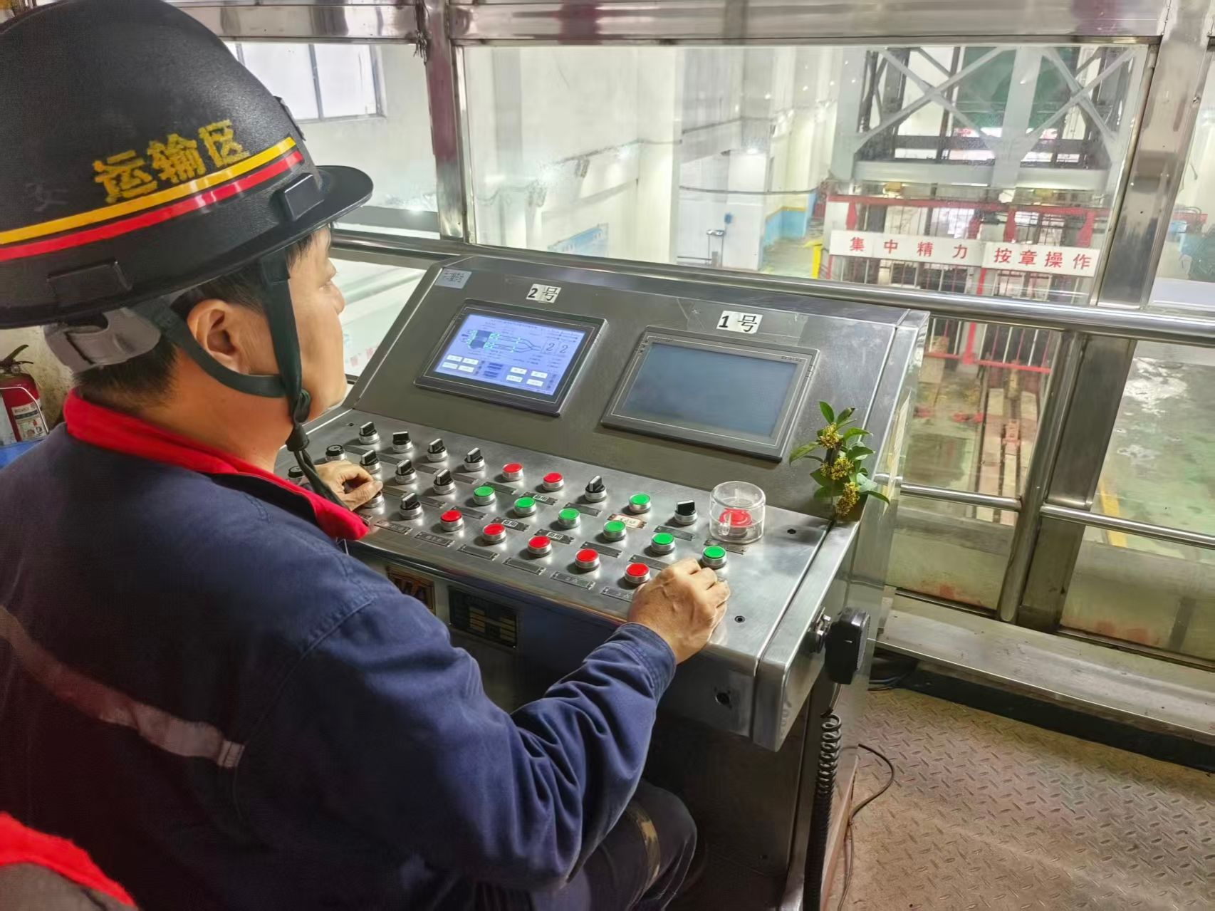 信号工杨中志则紧盯操作流程,手指在控制按钮上精准移动,每一次信号传递都严谨细致。“矿井的打运全靠信号‘传声’,半点差错都可能影响生产,节日里更得打起十二分精神。”他目光紧锁显示屏,及时回应井下传来的指令,用精准操作保障运输链路畅通。