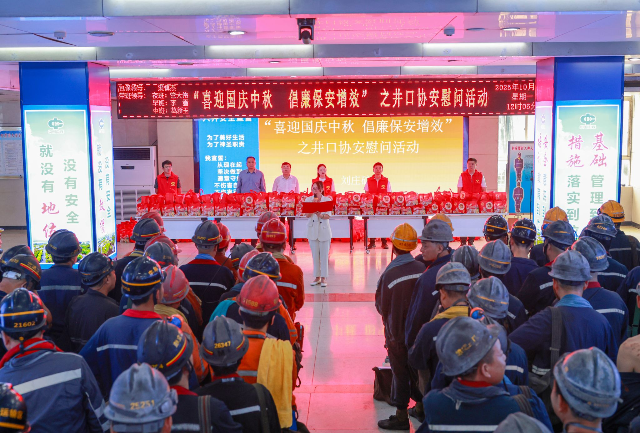金秋送爽,丹桂飘香。在国庆与中秋双节来临的美好时刻,刘庄矿业东、西区井口大厅洋溢着温馨喜庆的氛围。10月6日中班,一场以“喜迎国庆中秋 倡廉保安增效”为主题的井口协安慰问活动在此温情上演,为企业安全生产注入了浓浓的人文关怀。矿党委书记苏多云、驻矿安监处处长廖延杰等矿领导,当班干部职工、矿志愿者、女工协安员代表参加。