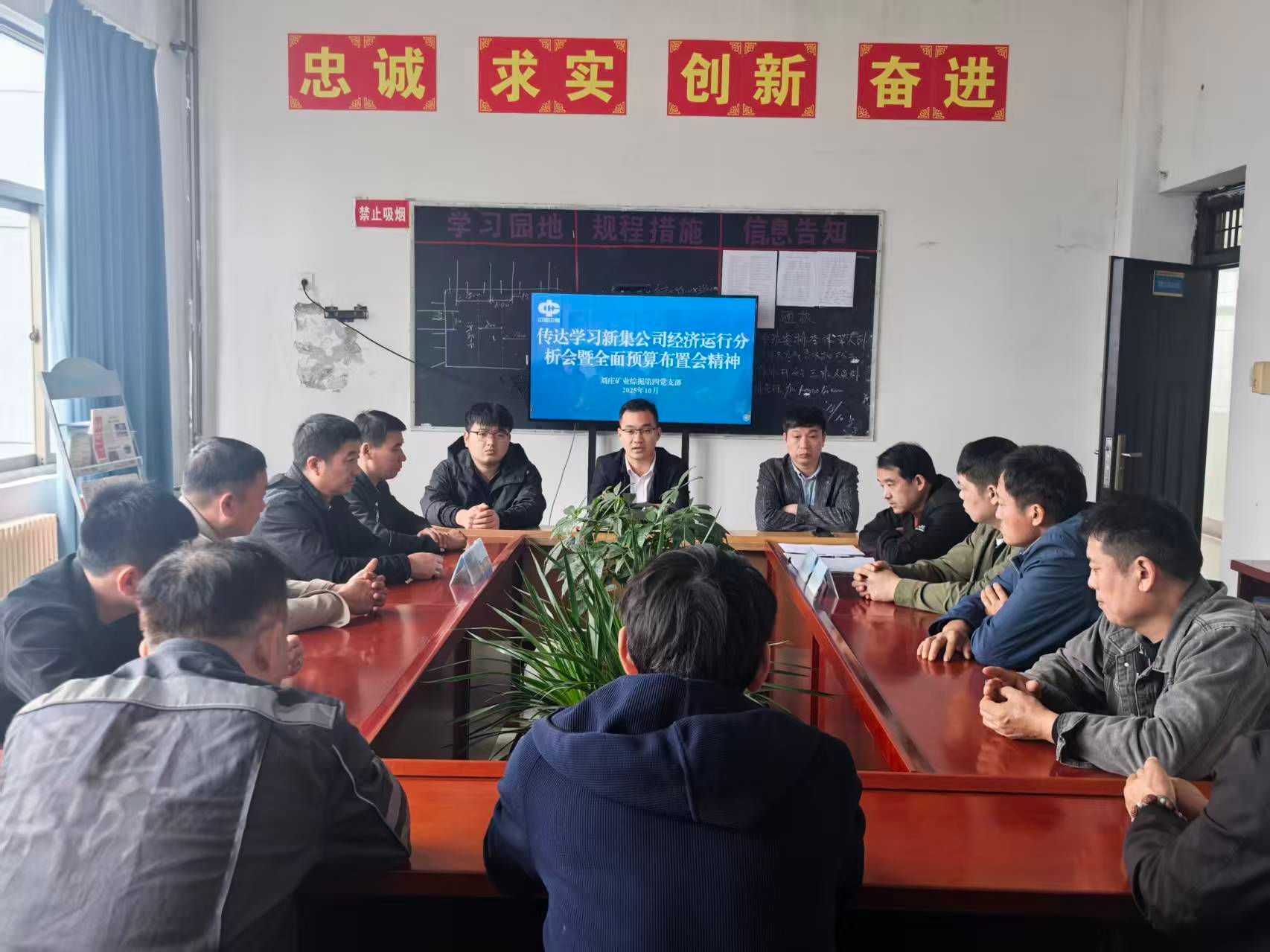 为深入学习贯彻新集公司2025年第三季度经济运行分析会暨2026年全面预算布置会精神,切实把全体职工的思想和行动统一到公司决策部署上来,10月13日,刘庄矿业综掘第四党支部组织召开专题学习会,面向基层区队全面传达会议精神,凝聚奋进共识,激发实干动能。