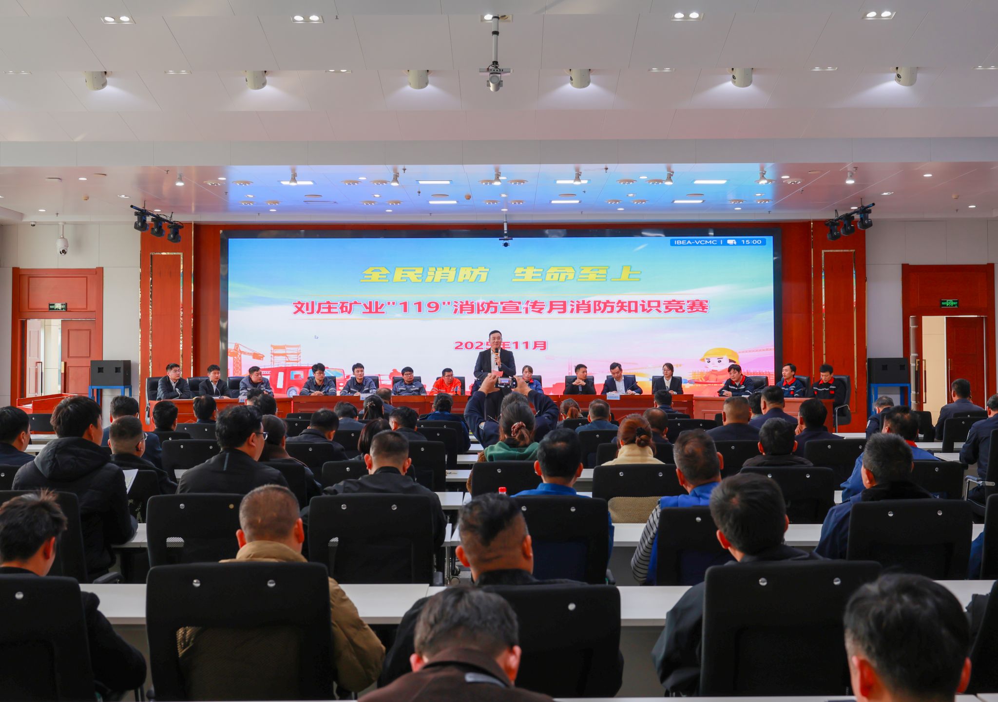 12月1日,刘庄矿业在东大会议室开展“全民消防、生命至上——安全用火用电”主题消防知识竞赛,矿领导苏多云、廖延杰、孔令胜出席,参赛选手、各单位义务消防员和职工代表共计200余人参加。