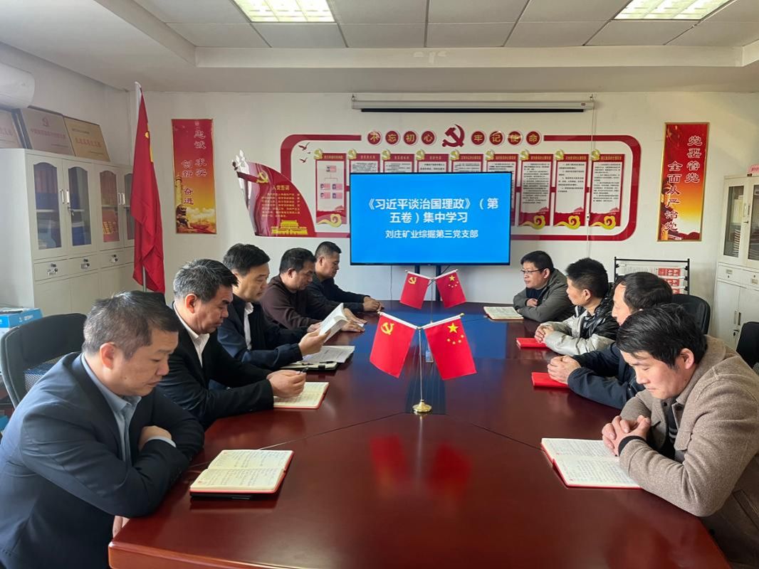 为持续深入学习贯彻习近平新时代中国特色社会主义思想,进入12月份,刘庄矿业综掘第三党支部组织开展《习近平谈治国理政》第五卷学习活动,引导广大党员干部深刻领会书中精髓要义,以学促干,推动区队工作不断迈上新台阶。