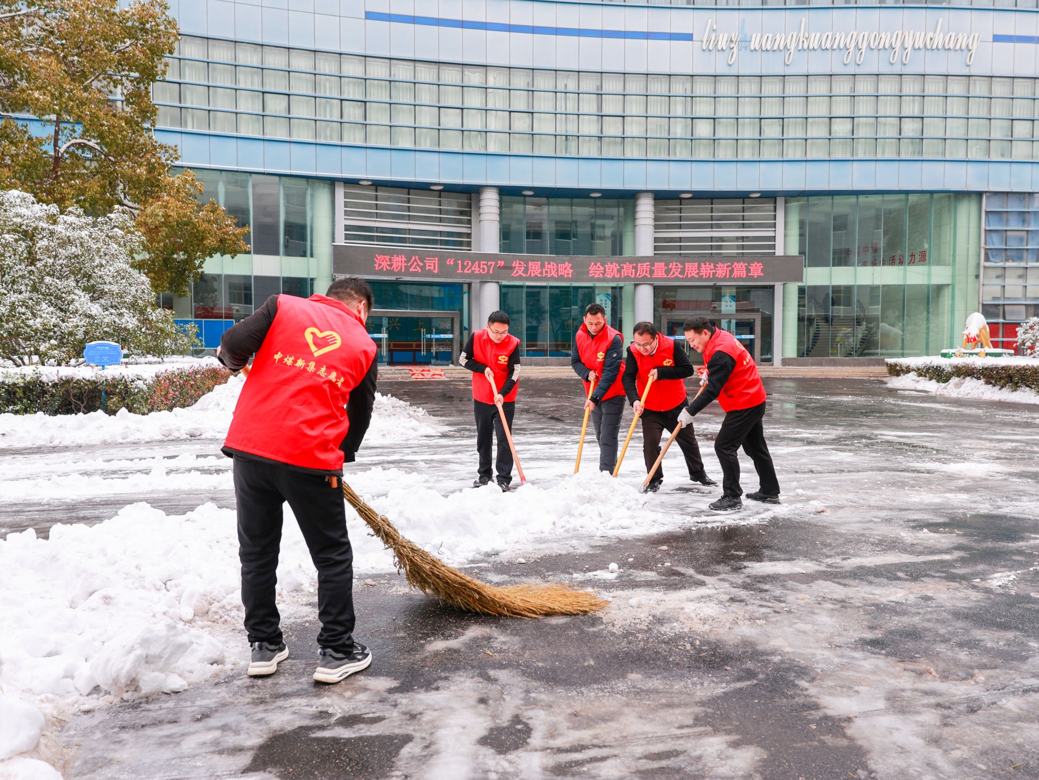 近日,持续低温降雪给矿区职工的安全出行带来挑战。刘庄矿业迅速行动,以基层党支部为战斗堡垒,吹响扫雪除冰“集结号”。