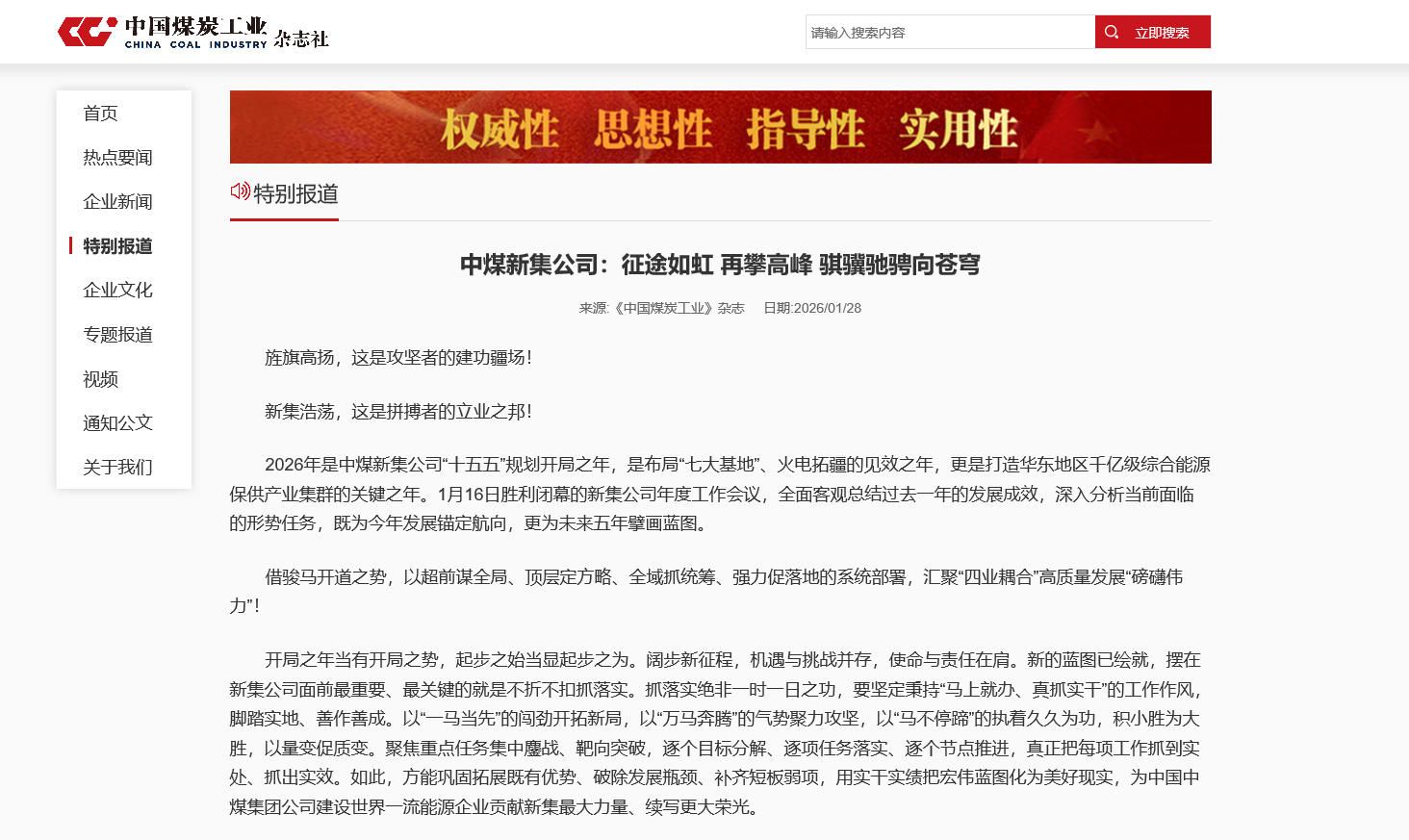 续写更大荣光,擘画蓝图、勇攀高峰。历史长河奔腾不息,在冲波逆折处更显壮阔。2026年是“十五五”规划开局之年,做好全年工作意义重大。新集公司年度工作会议进一步明确了安全管理、生态环保、提质增效、转型升级、改革创新、人才战略、党建引领、民生工程等重点工作,为全面奋进千亿能源集群建设新征程,开好头、迈好步。在抓好现有5对矿井“产量稳、销售稳”的同时,进一步整合煤炭资源,实现上饶、滁州、六安三座电厂上半年全部投产发电。高起点打造多能互补的绿色能源基地,探索新能源与化工联营,前瞻性部署碳捕集与封存(CCUS)、规模化绿电制氢制氨等创新研究,全面增强新集公司抗风险能力,以生动的发展实践实现企业高质量的可持续发展。同时,精准实施人才战略,坚持一切依靠职工、一切为了职工,精准施策,做实民生工程,推动企业高质量发展成果惠及全体职工。