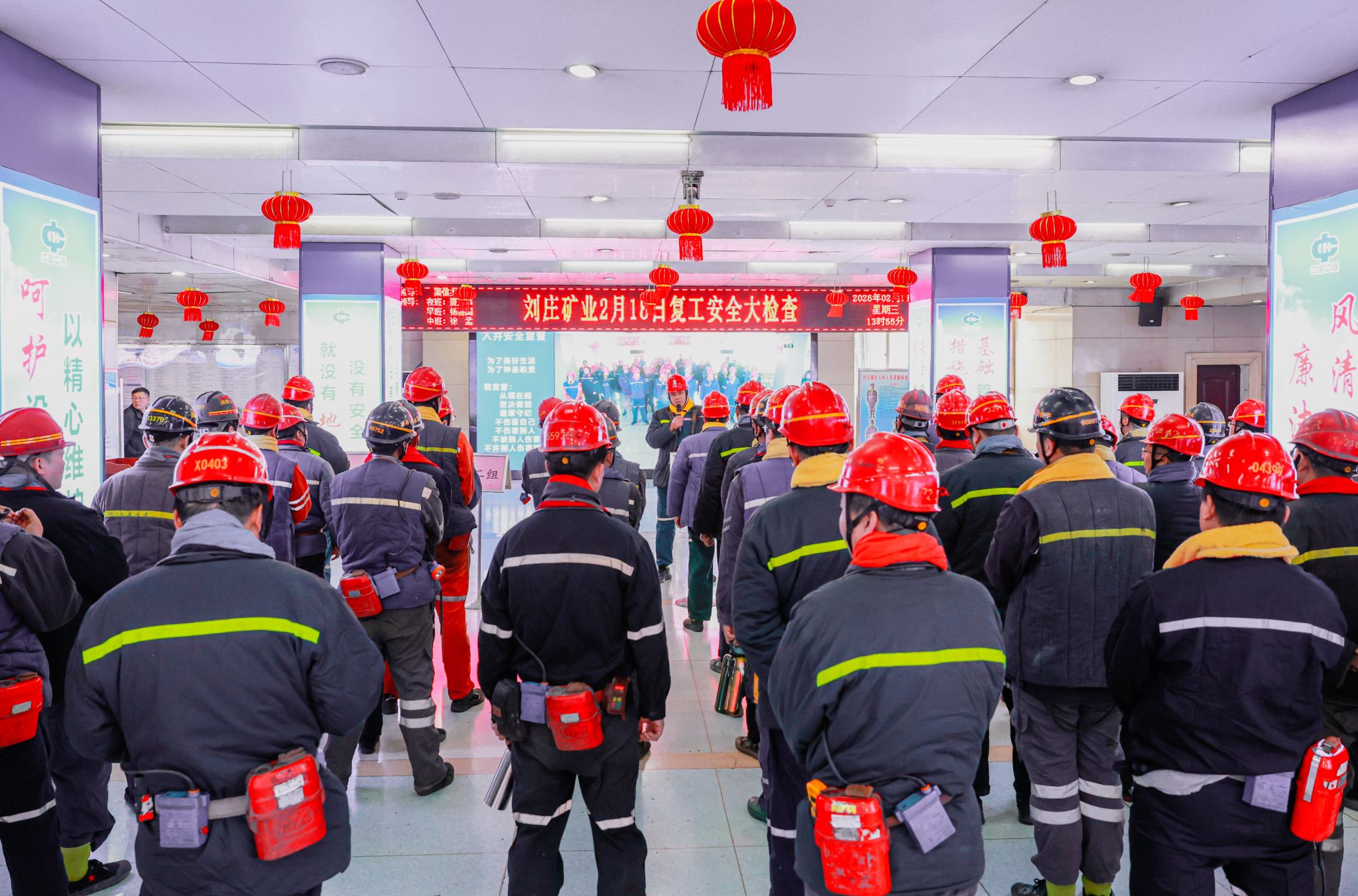 2月18日中班,刘庄矿业组织开展春节节后复工安全大检查,公司安全包保组成员,矿长焦金宝、矿党委书记苏多云、驻矿安监处处长廖延杰等副总级及以上领导,职能科室及基层单位相关人员参加。