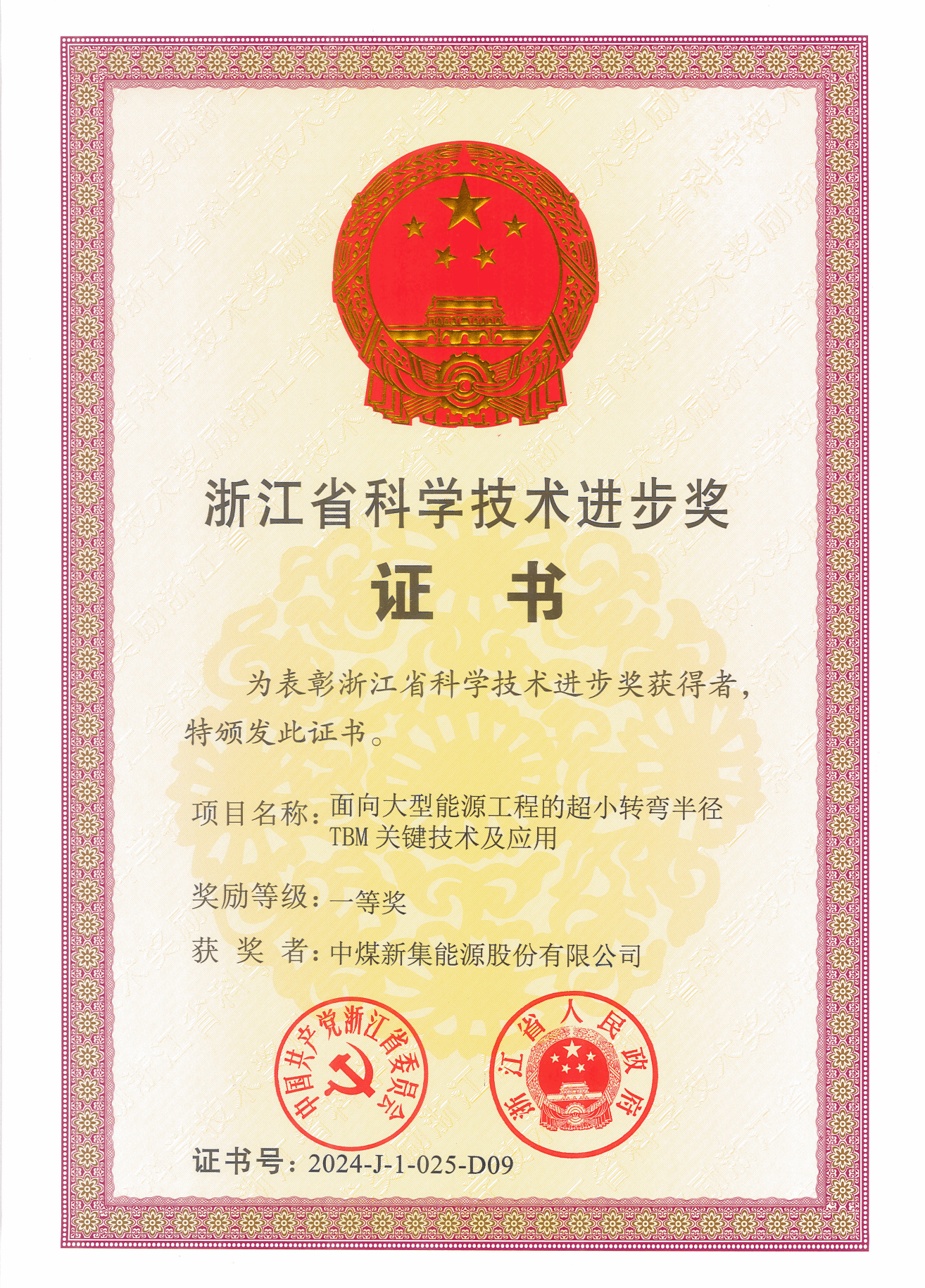 近日,2025年度浙江省科技进步奖评选结果揭晓,《面向大型能源工程的超小转弯半径TBM关键技术及应用》项目荣获一等奖。刘庄矿业作为核心参与单位,在项目研发与实践中贡献关键力量,在大断面小转弯半径掘进、穿软岩快速掘进及围岩控制等领域实现重大科技创新,彰显了其在能源工程技术领域的强劲实力。