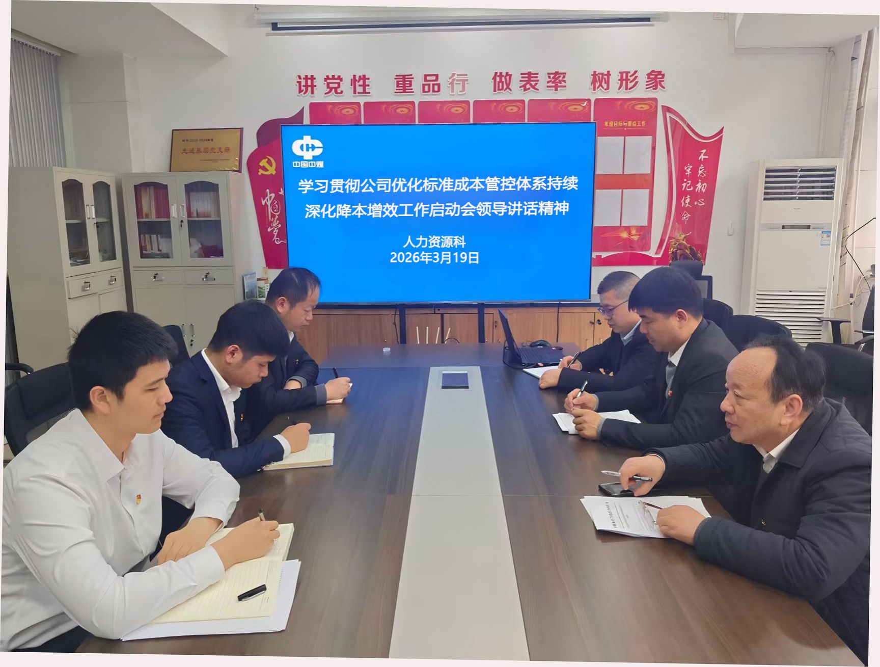 3月19日,刘庄矿业人力资源科在支部会议室召开专题学习会,专题学习贯彻公司优化标准成本管控体系、持续深化降本增效工作启动会精神,科室全体人员参加会议。