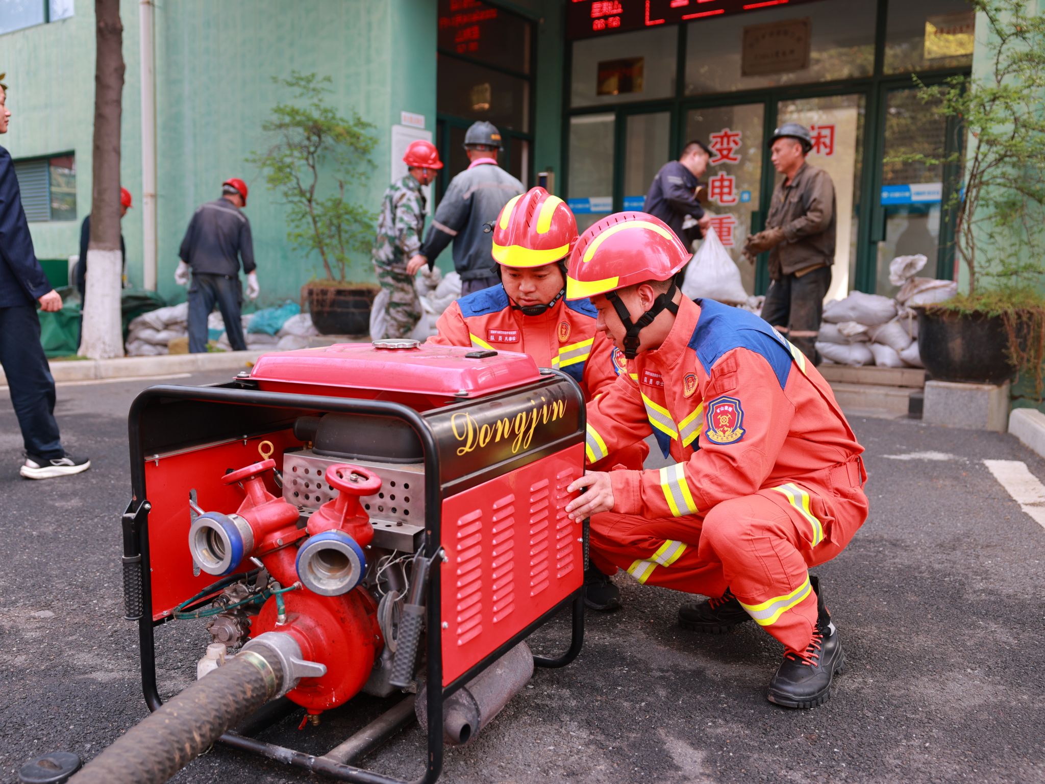 演练紧扣汛期调度指挥、变电所防汛防护、应急响应启动、险情协同处置等关键环节。各应急小组闻令而动、密切配合:地测防治水科实时监测水情动态,物业部及时开启排水闸阀,救护队迅速启动现场水泵,供电队现场构筑防水坝,固定队高效架设排水设备,合力排空水仓积水。现场处置紧张有序,变电所积水快速回落,内涝威胁顺利解除。9时50分,总指挥宣布演练圆满结束。