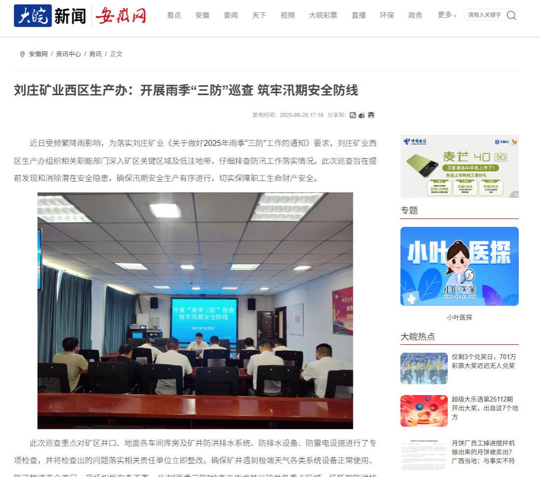 近日受频繁降雨影响,为落实刘庄矿业《关于做好2025年雨季“三防”工作的通知》要求,刘庄矿业西区生产办组织相关职能部门深入矿区关键区域及低洼地带,仔细排查防汛工作落实情况。此次巡查旨在提前发现和消除潜在安全隐患,确保汛期安全生产有序进行,切实保障职工生命财产安全。