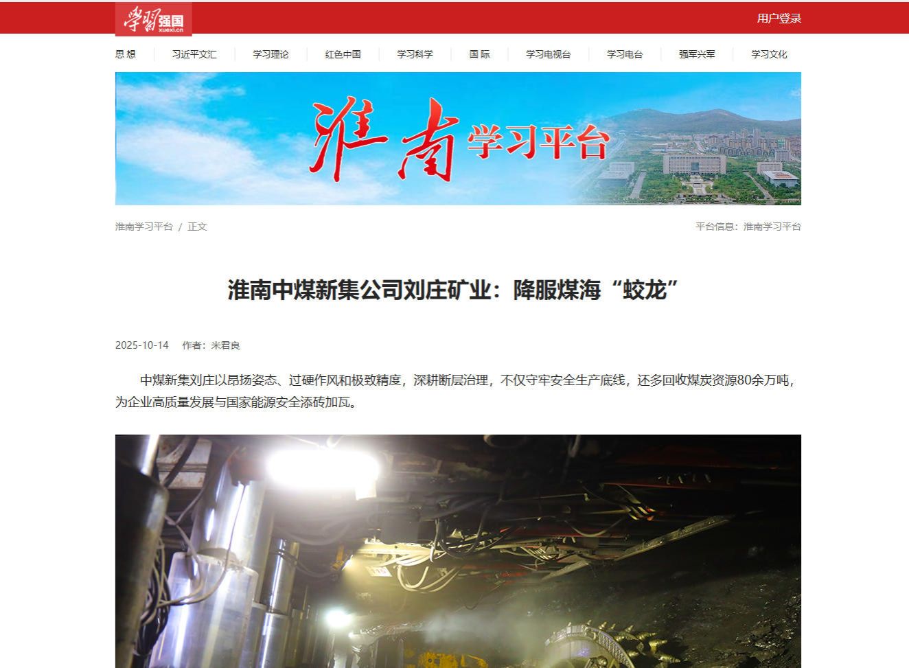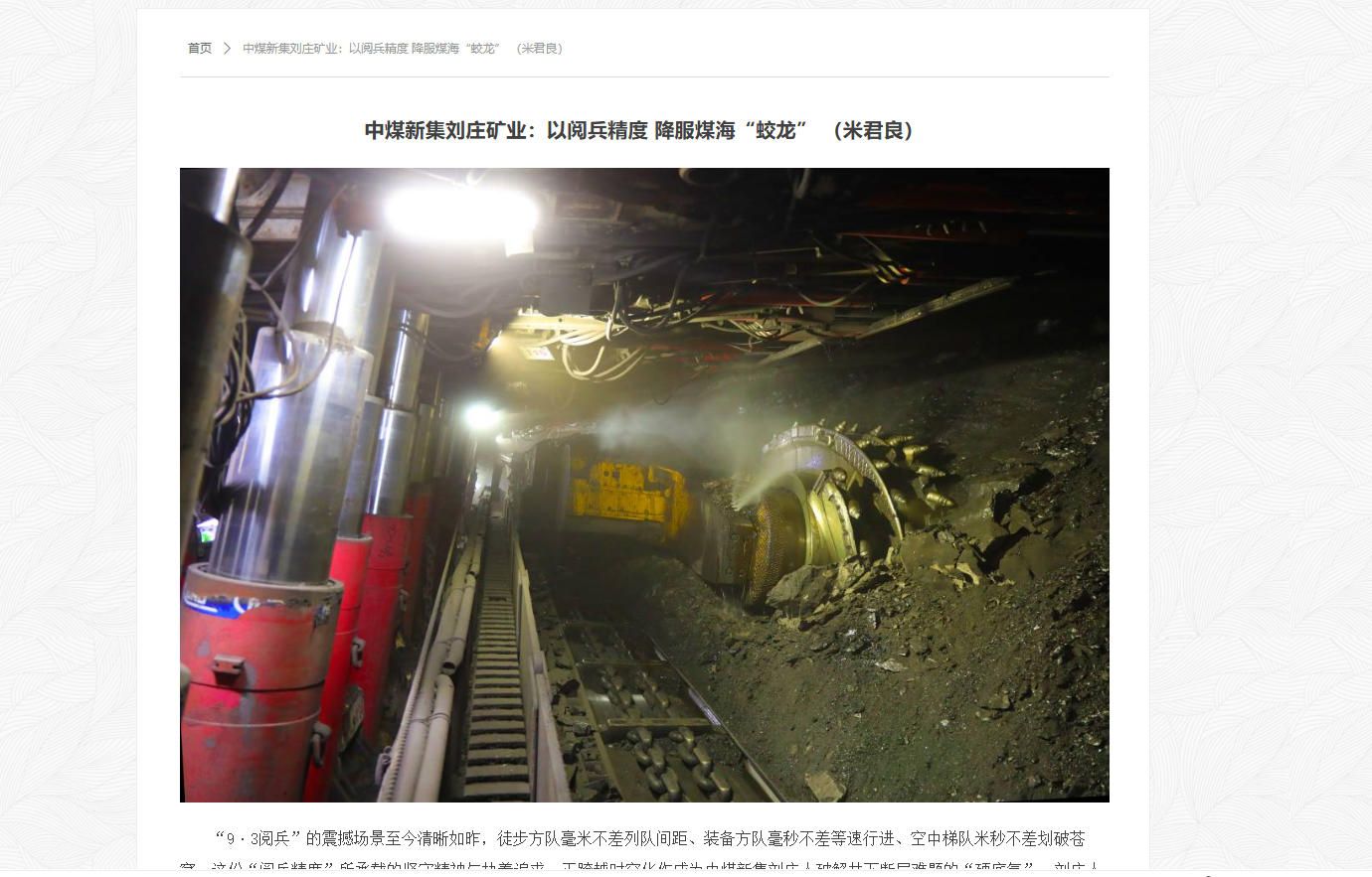 《学习强国》刘庄矿业:用“阅兵精度” 降服煤海“蛟龙”