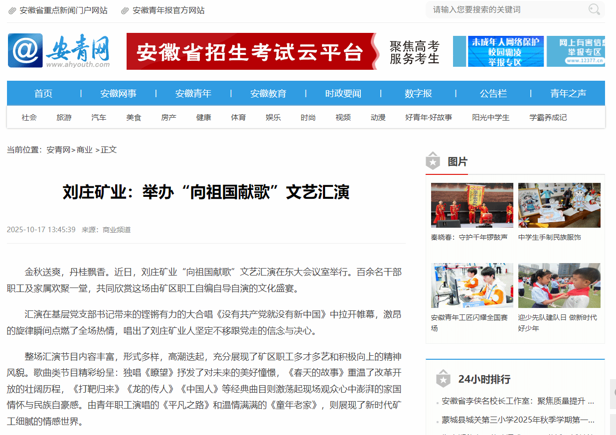 金秋送爽,丹桂飘香。近日,刘庄矿业“向祖国献歌”文艺汇演在东大会议室举行。百余名干部职工及家属欢聚一堂,共同欣赏这场由矿区职工自编自导自演的文化盛宴。