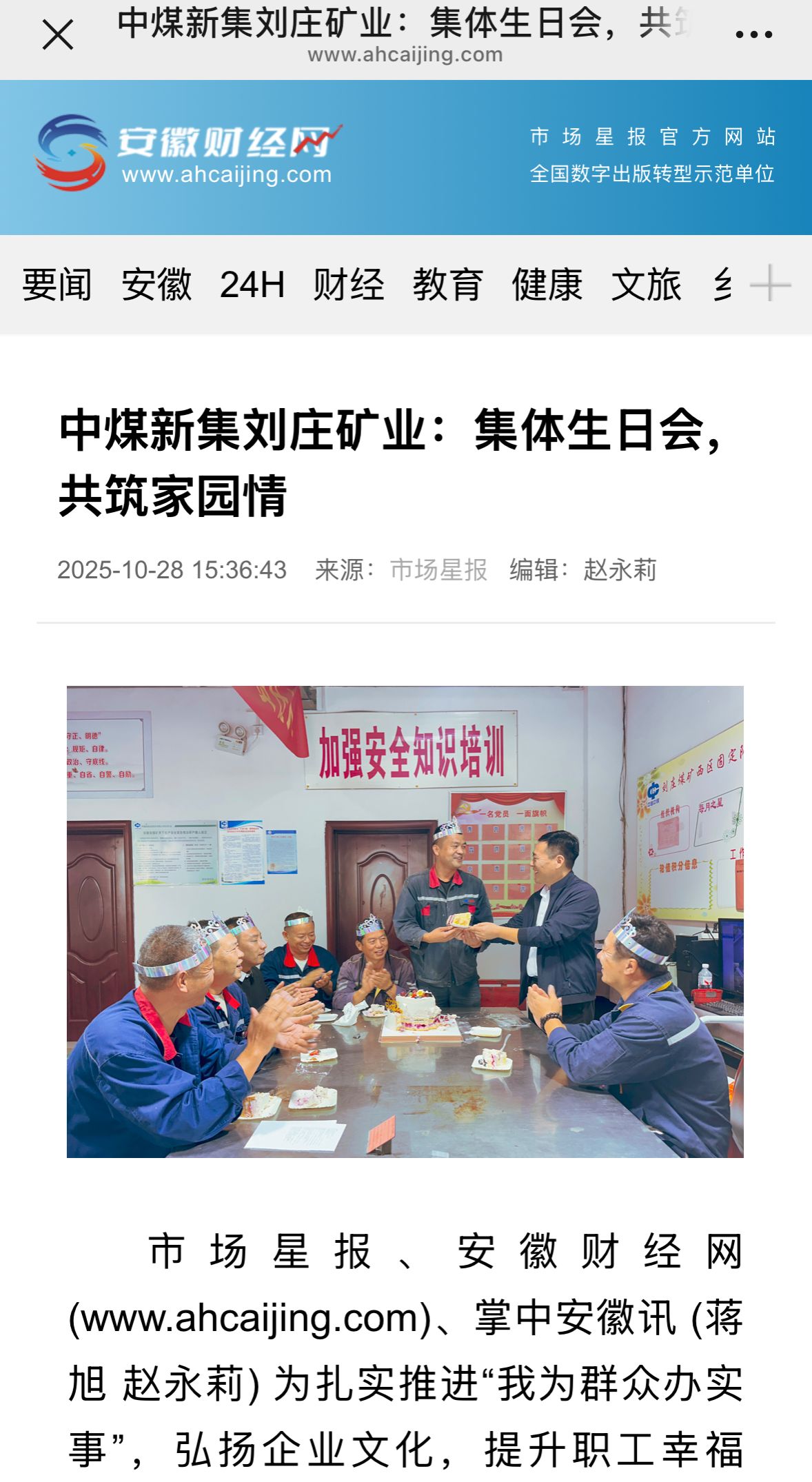 日期:2025-10-29 文章来源:刘庄矿业 作者:蒋旭 点击数: