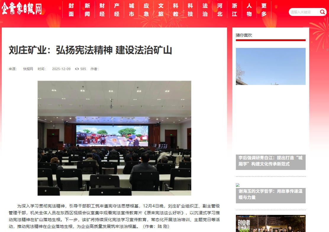 为深入学习贯彻宪法精神,引导干部职工筑牢遵宪守法思想根基,12月4日晚,刘庄矿业组织正、副主管级管理干部,机关全体人员在东西区视频会议室集中观看宪法宣传教育片《原来宪法这么好听》,以沉浸式学习推动宪法精神在矿山落地生根。下一步,该矿将持续深化宪法学习宣传教育,常态化开展法治培训、主题党日等活动,推动宪法精神在企业落地生根,为企业高质量发展筑牢法治根基。