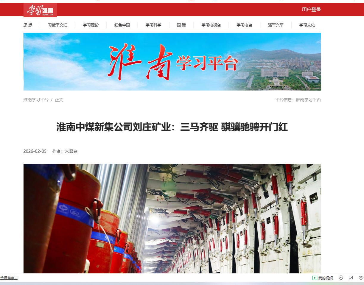 首月生产经营全线飘红、战绩亮点纷呈。中煤集团新集公司刘庄矿业矿井商品煤产量、掘进进尺、煤质、利润分别完成计划的106.39%、118.74%、104.45%、141.92%。各项核心指标均超额完成计划目标,高质量实现新年“开门红”,以良好成绩吹响“十五五”开局攻坚的冲锋号。