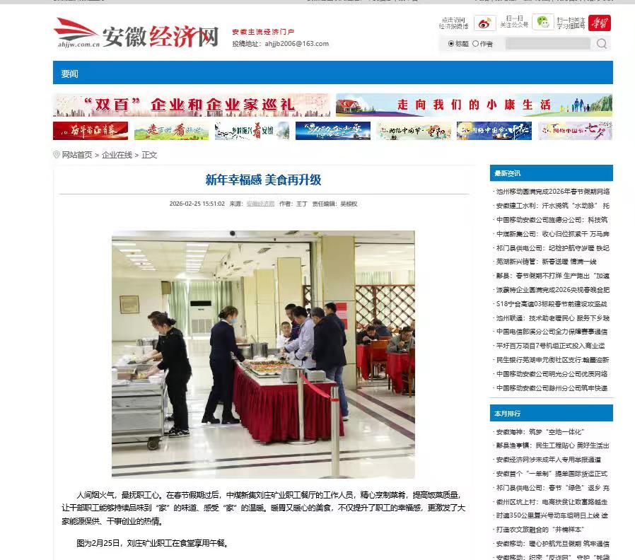 人间烟火气,最抚职工心。在2026年春节假期过后,刘庄矿业职工餐厅工作人员,精心烹制菜肴,提高饭菜质量,让干部职工能够持续品味到“家”的味道、感受“家”的温暖。暖胃又暖心的美食,不仅提升了职工的幸福感,更激发了大家能源保供、干事创业的热情。