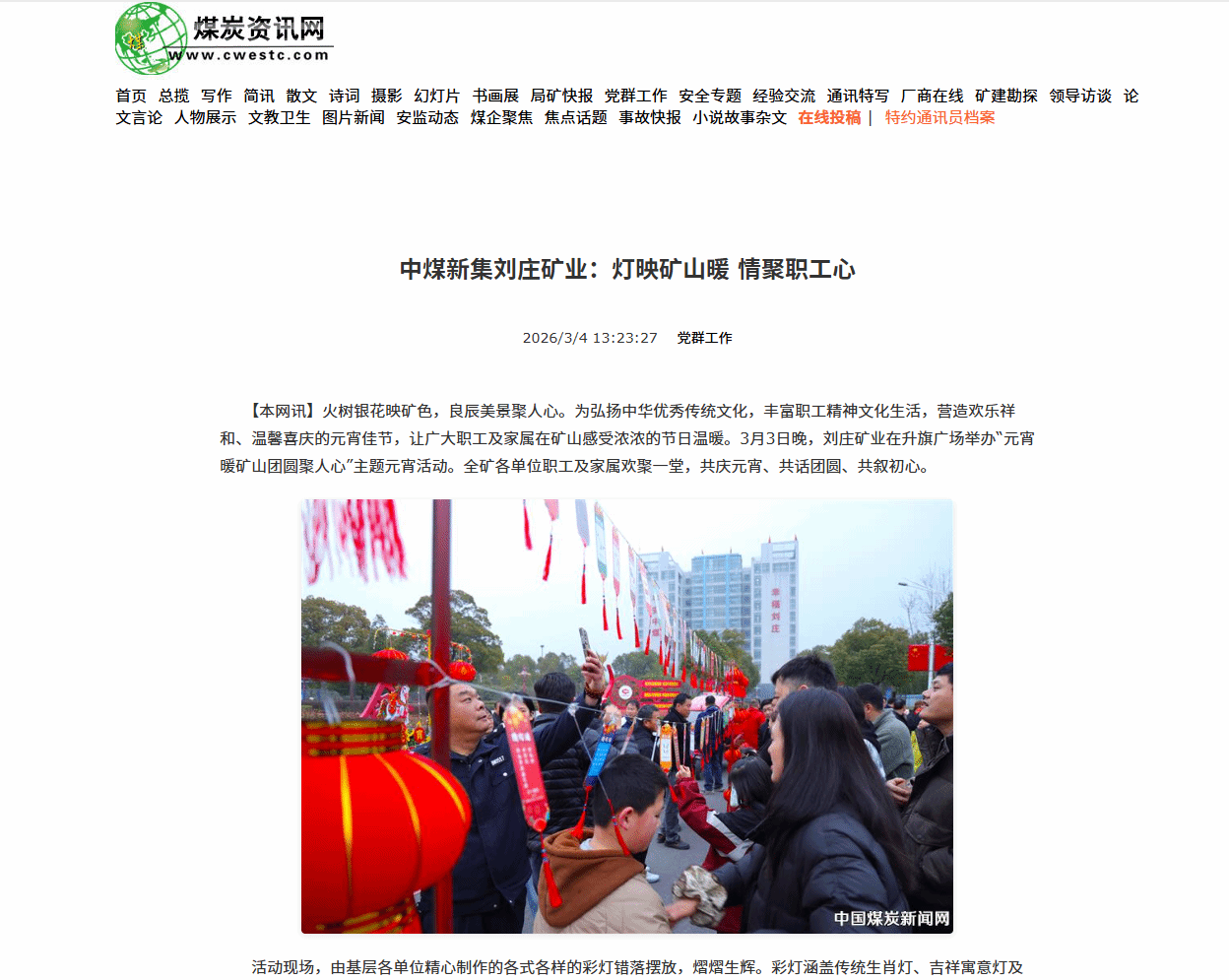 火树银花映矿色,良辰美景聚人心。为弘扬中华优秀传统文化,丰富职工精神文化生活,营造欢乐祥和、温馨喜庆的元宵佳节,让广大职工及家属在矿山感受浓浓的节日温暖。3月3日晚,刘庄矿业在升旗广场举办“元宵暖矿山团圆聚人心”主题元宵活动。全矿各单位职工及家属欢聚一堂,共庆元宵、共话团圆、共叙初心。