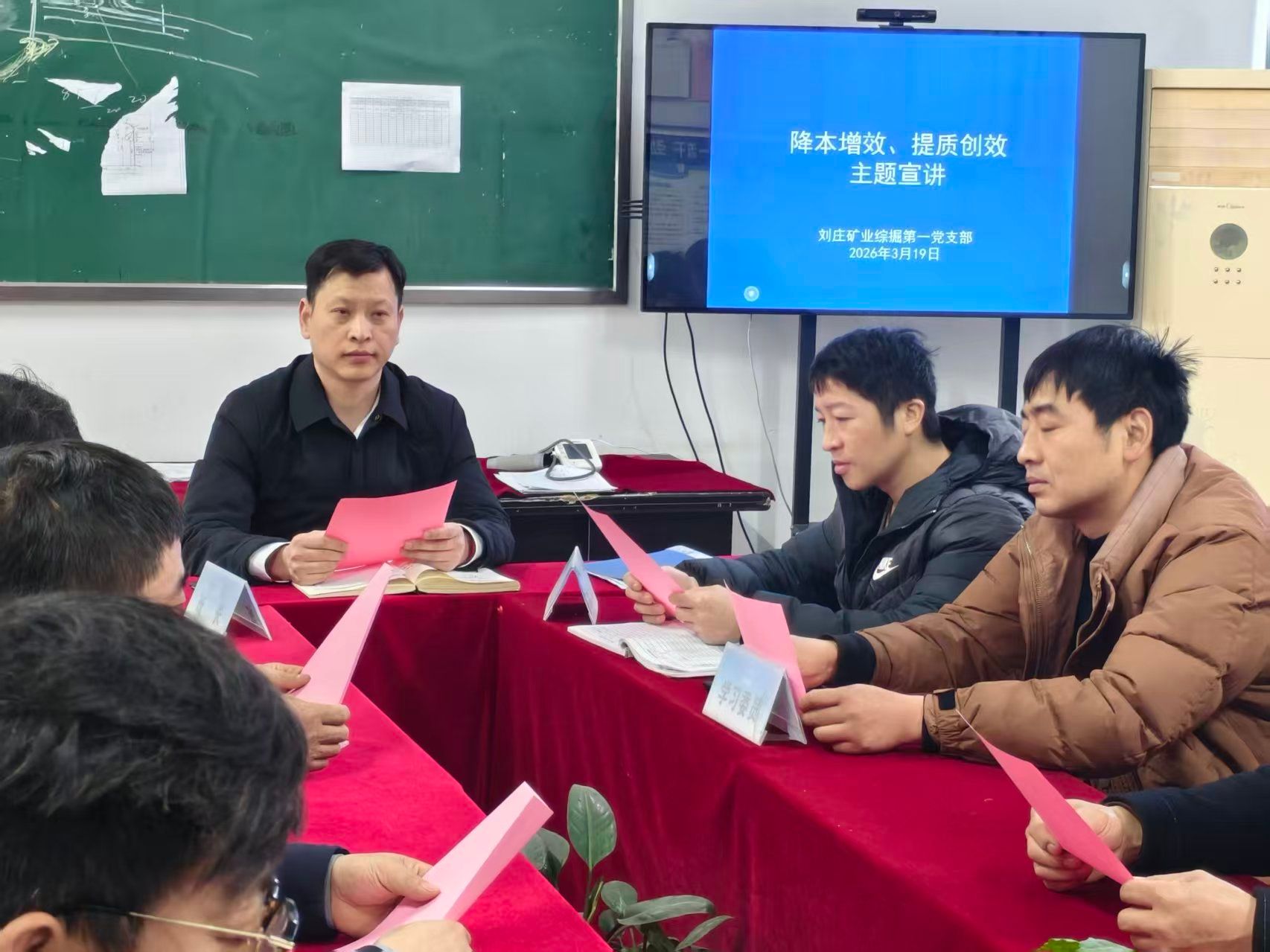 为深入贯彻落实公司及矿关于优化标准成本管控体系、持续推动降本增效工作启动会精神,3月19日,刘庄矿业综掘第一党支部闻令而动、听令而行,迅速组织开展“降本增效,提质创效”主题宣讲活动,旨在引导全体干部职工深刻认识当前经营形势的严峻性,牢固树立“过紧日子”的思想,以更加坚定的信心、更加务实的举措,全力打好降本增效攻坚战。