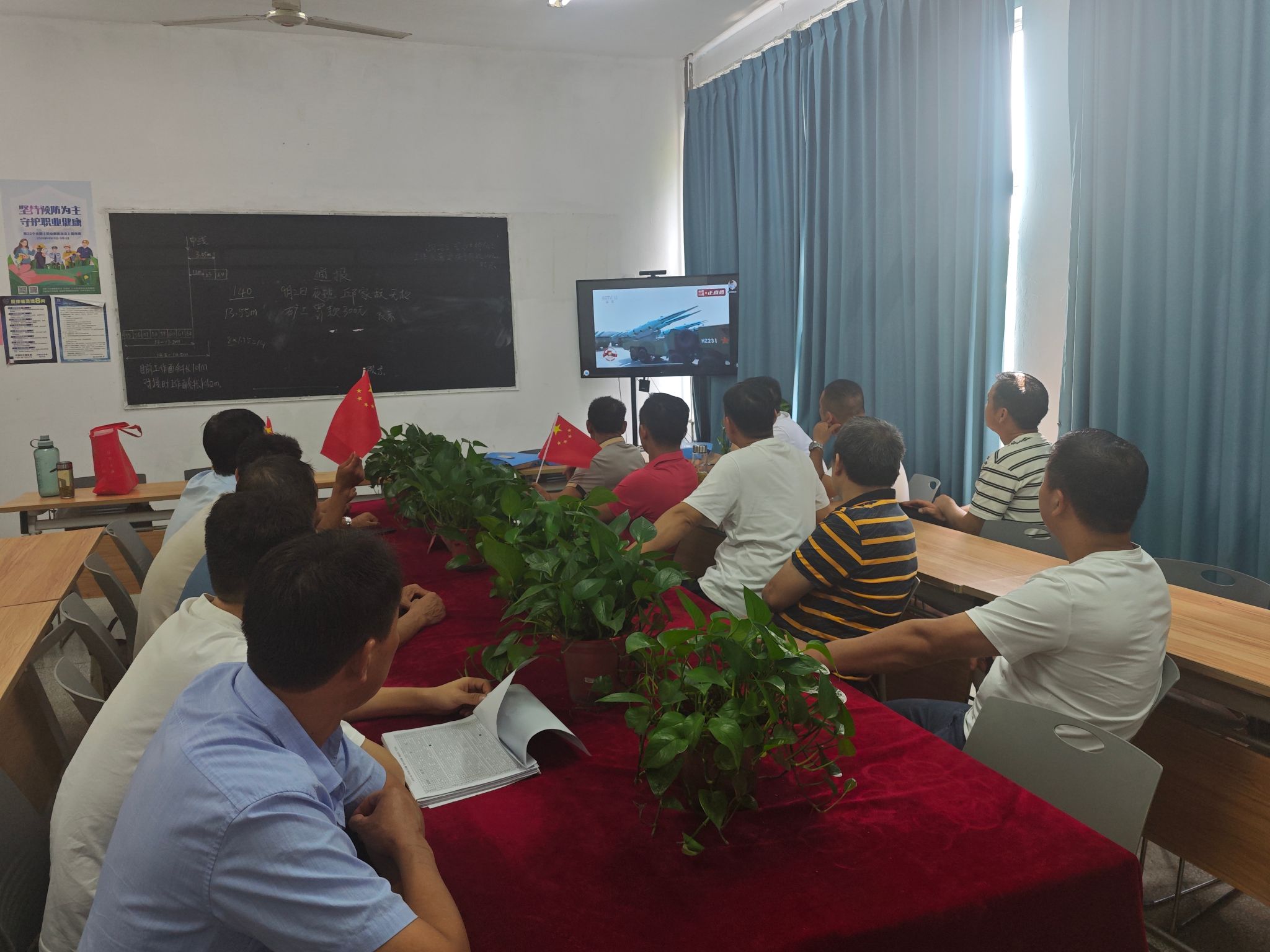 为纪念中国人民抗日战争暨世界反法西斯战争胜利80周年,激发职工爱国主义教育,综采三队党支部组织职工集中观看了九三阅兵直播,共同见证了这一庄严而激动人心的时刻。