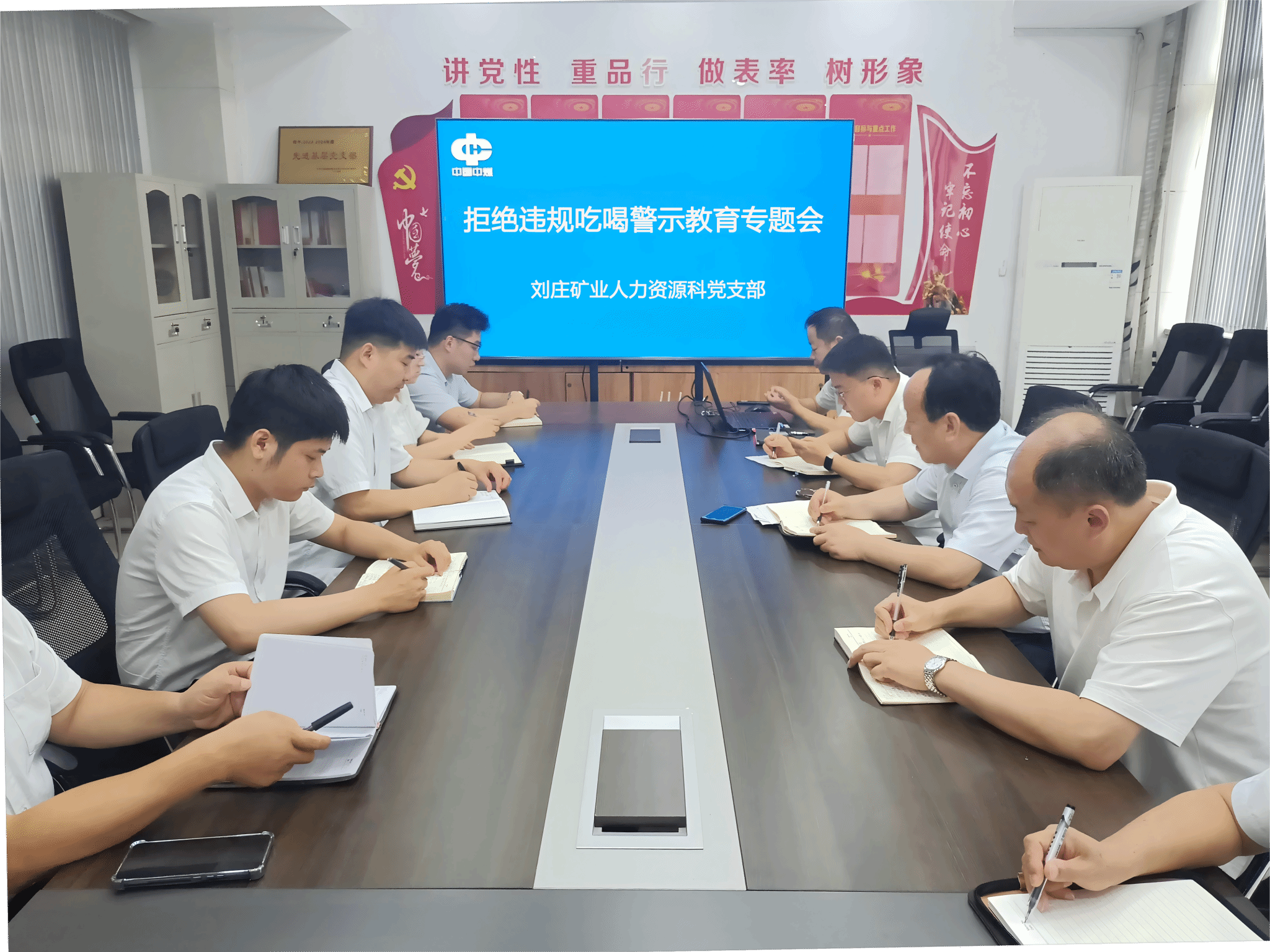 9月10日,刘庄矿业人力资源科党支部在支部会议室召开拒绝违规吃喝警示教育专题会,以“学规定、明底线、敲警钟”为主题,为全员筑牢廉洁思想防线。