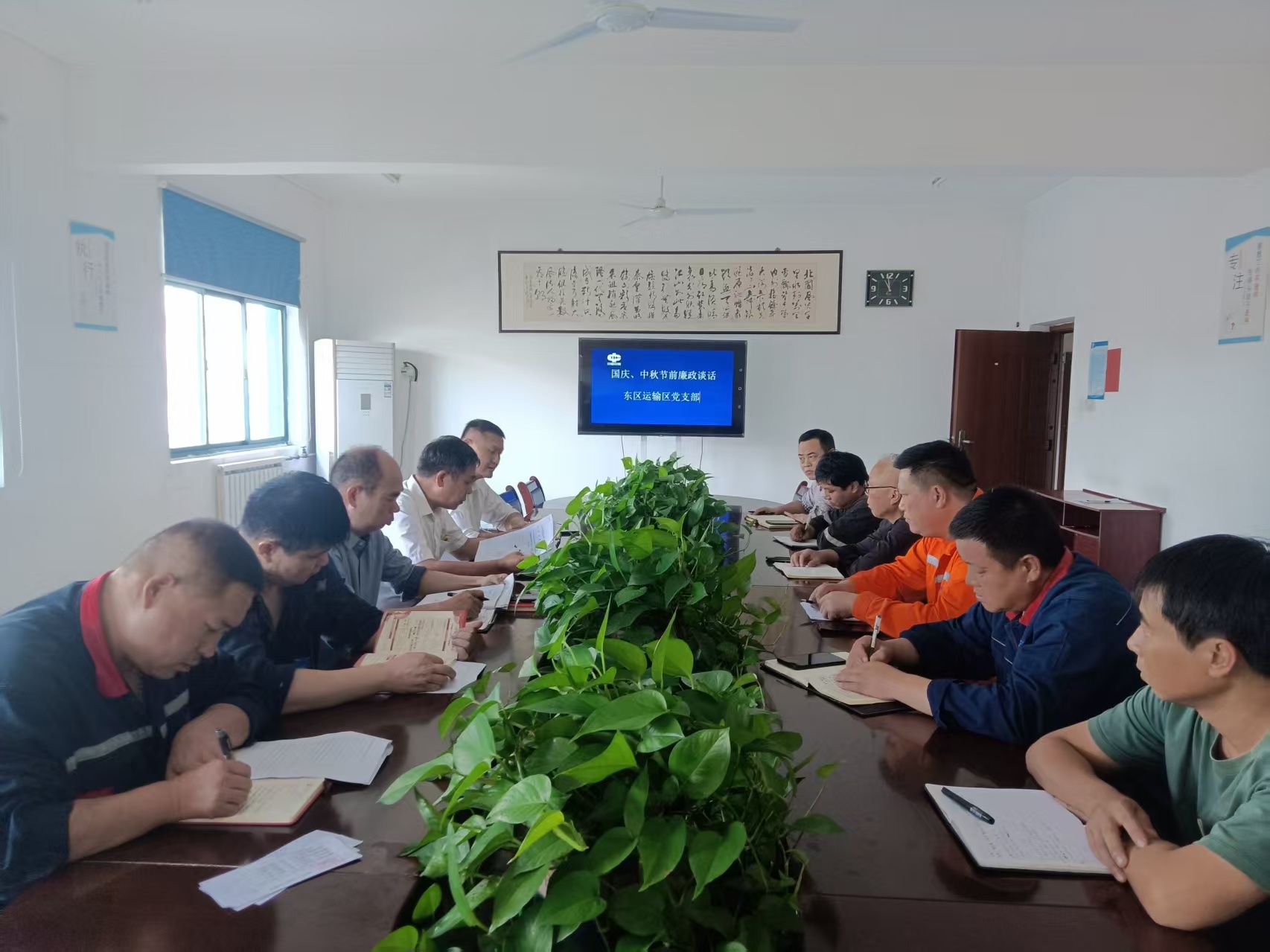 为筑牢节日期间廉洁防线,严防“四风”问题反弹回潮,9月30日,在国庆、中秋双节来临之际,刘庄矿业东区运输区党支部组织开展节前廉政谈话,该支部党员干部、班组长及关键岗位人员参会。