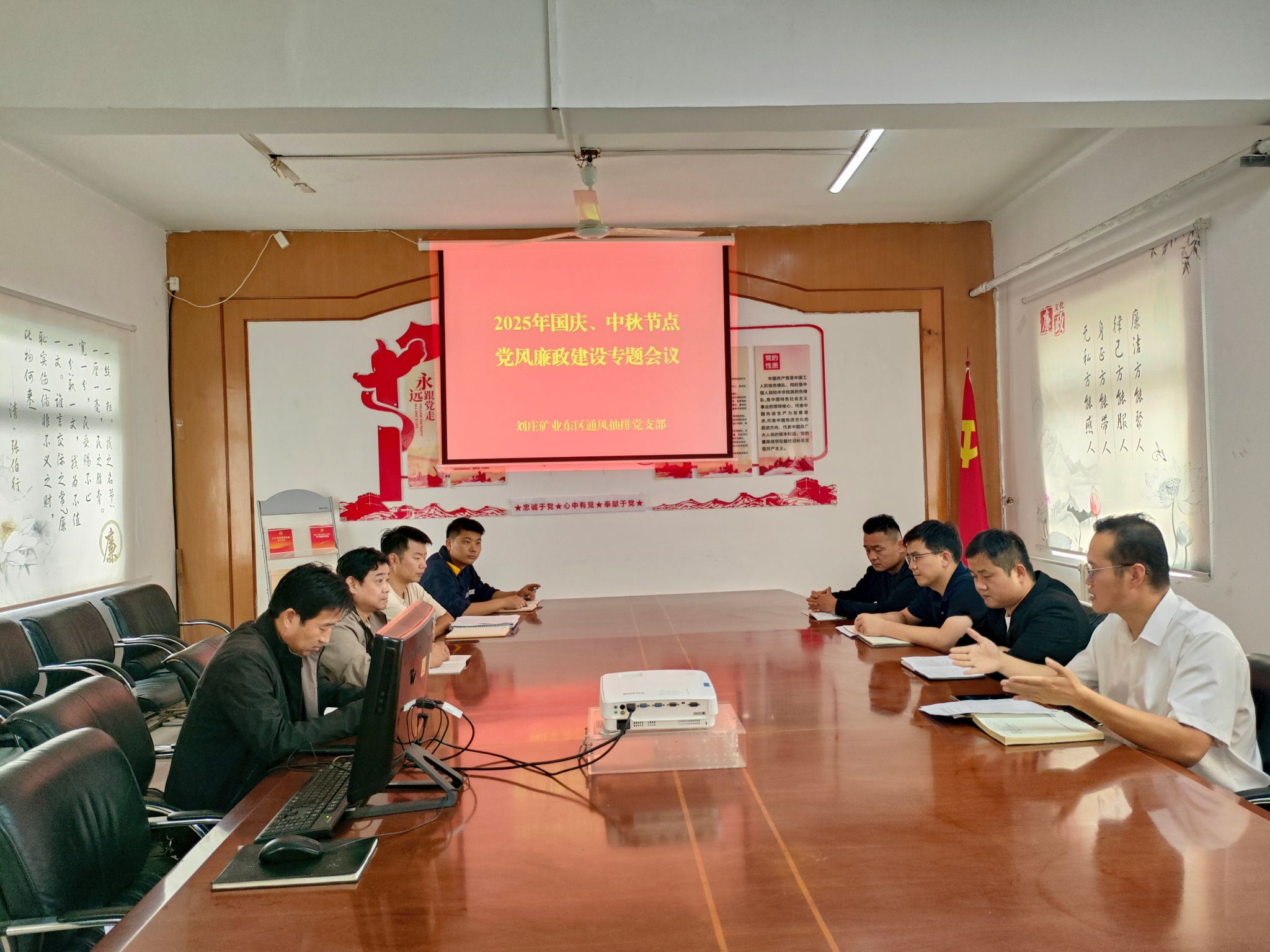 国庆、中秋“两节”氛围正浓,廉政防线更需紧绷。为深入贯彻落实刘庄矿业纪委关于纠“四风”、树新风工作部署,10月5日,刘庄矿业东区通风抽排党支部组织党员干部及关键岗位人员召开党风廉政建设专题会议。会议围绕“筑牢廉政根基、护航安全生产”目标,以“学、紧、引”三项举措推动廉政建设与岗位业务深度融合,为矿井高质量发展注入“清风动能”。