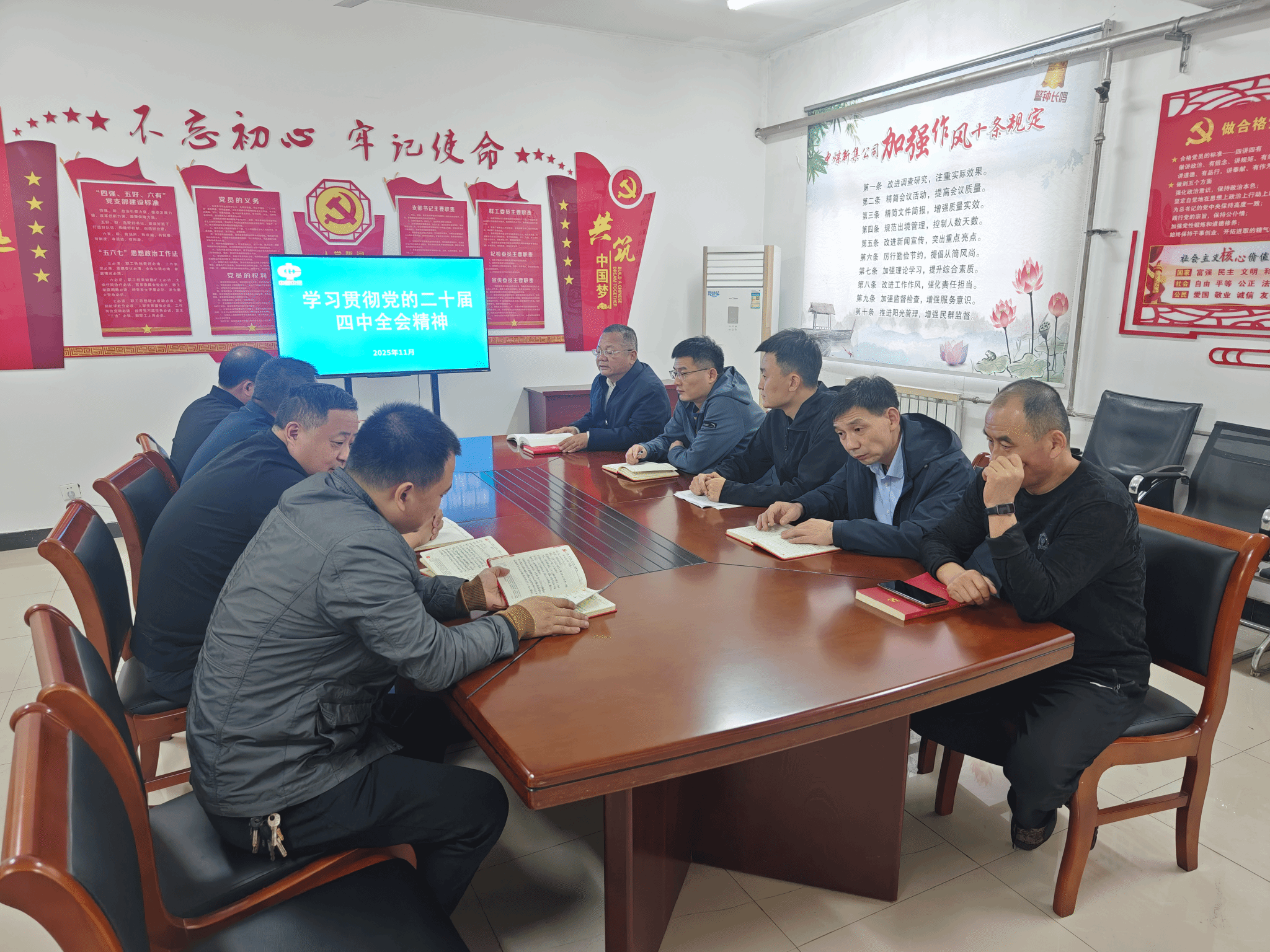 为深入学习宣传贯彻党的二十届四中全会精神,进一步把思想和行动统一到全会精神上来,连日来,刘庄矿业东区机运党支部通过多元化的学习途径,创新学习方式,旨在深化党员思想认识、提高政治站位,推动党的二十届四中全会精神落地生根。