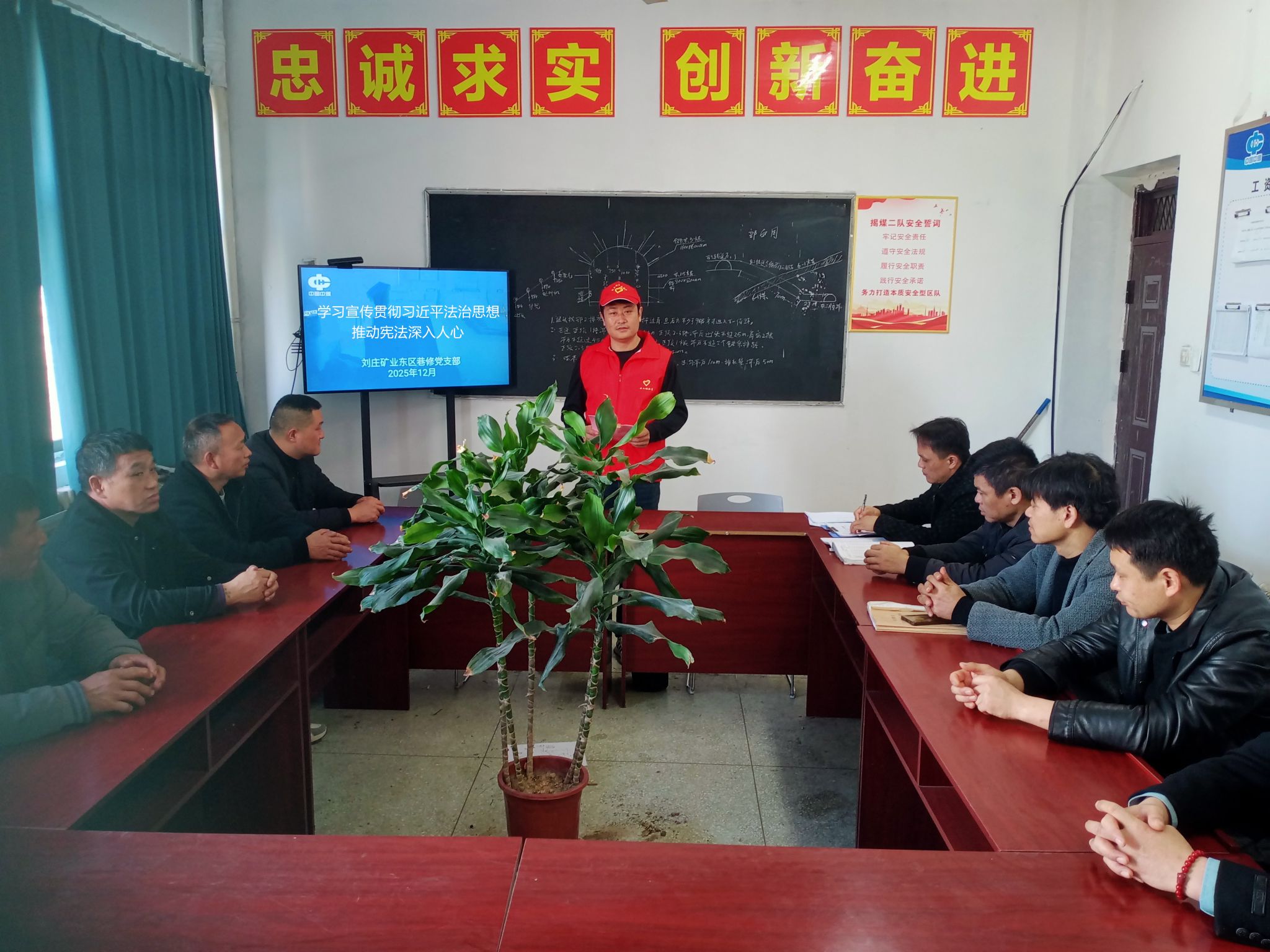 今年12月1日至7日是第八个“宪法宣传周”。为深入学习宣传贯彻习近平法治思想,大力弘扬宪法精神。刘庄矿业东区巷修党支部紧扣“学习宣传贯彻习近平法治思想,推动宪法深入人心”这一宣传主题,组织开展了形式多样、内容丰富的“宪法宣传周”系列活动,为矿井高质量发展注入强劲的“法治动能”。
