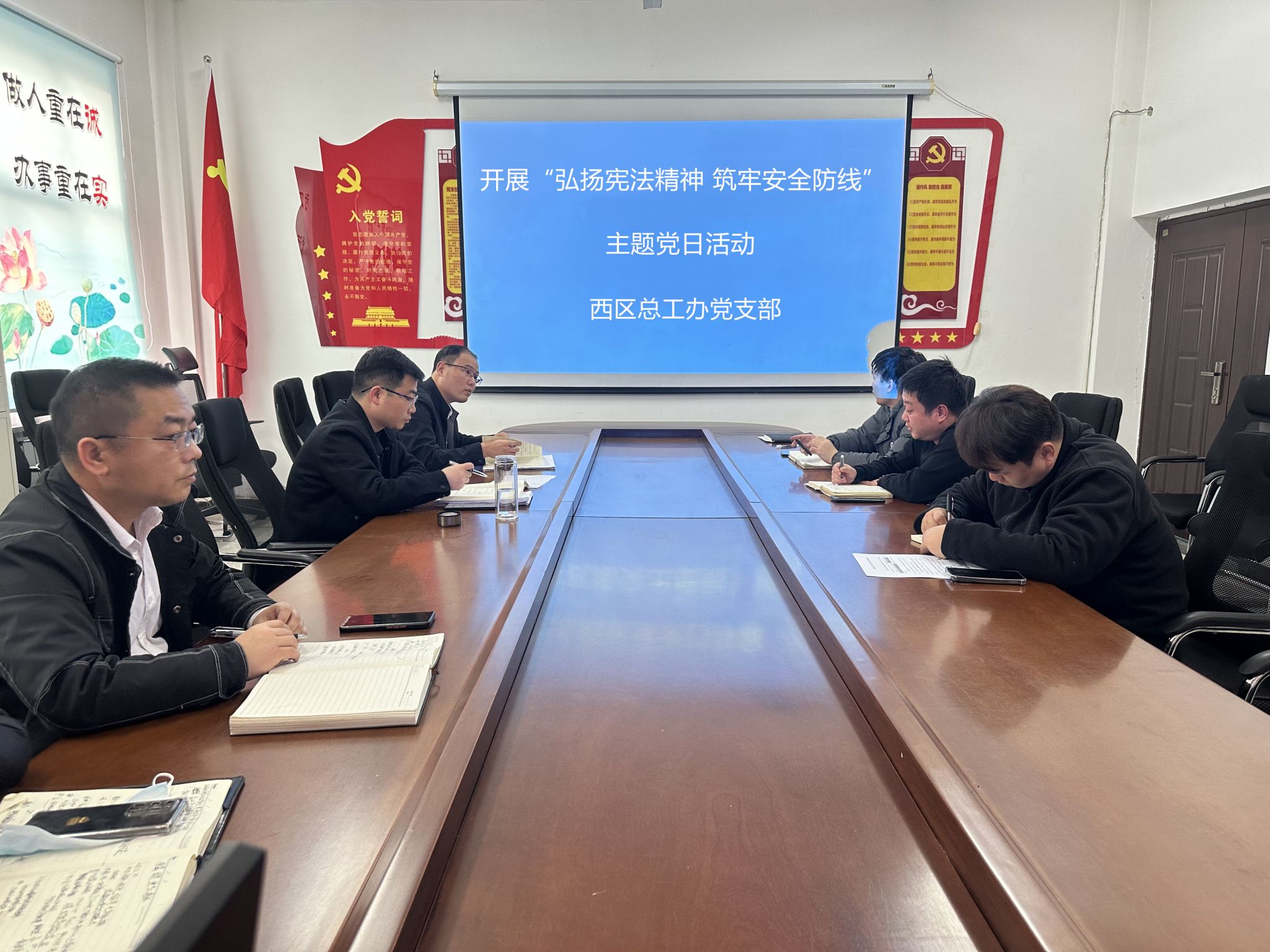 为深入学习贯彻宪法精神,切实增强党员干部和职工的法治观念,12月12日,刘庄矿业西区总工办党支部以“弘扬宪法精神 筑牢安全防线”为主题,组织开展12月份主题党日活动。