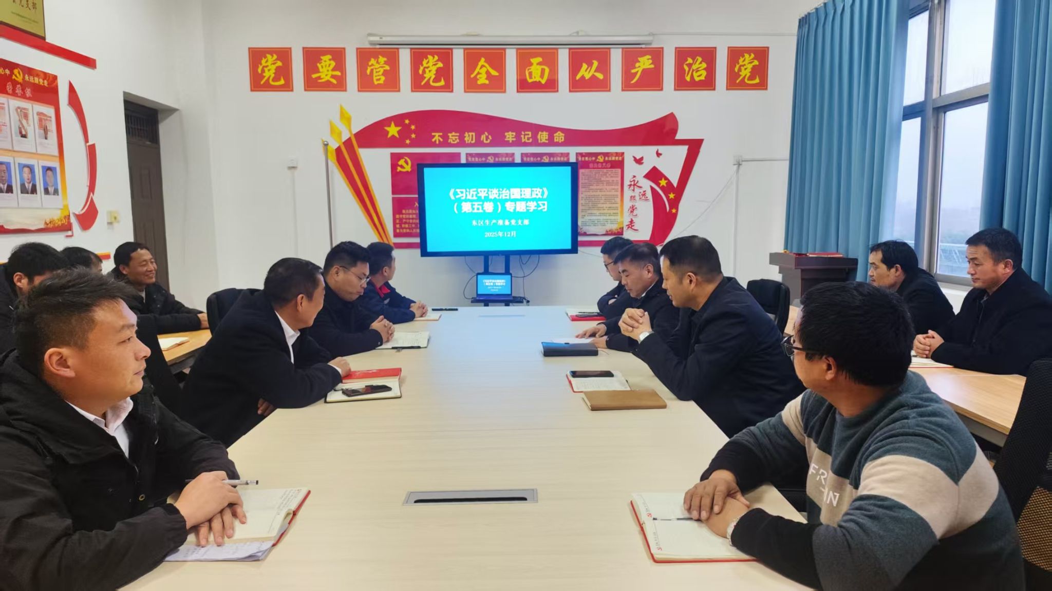 该支部利用“三会一课”时间组织党员干部原原本本研读《习近平谈治国理政》第五卷关键章节,结合煤矿行业特性,重点解读习近平总书记关于“人民至上、生命至上”“安全是发展的前提”等重要论述,强调《习近平谈治国理政》作为马克思主义中国化时代化的最新成果,为基层区队统筹安全与发展、破解生产难题提供了根本遵循。
