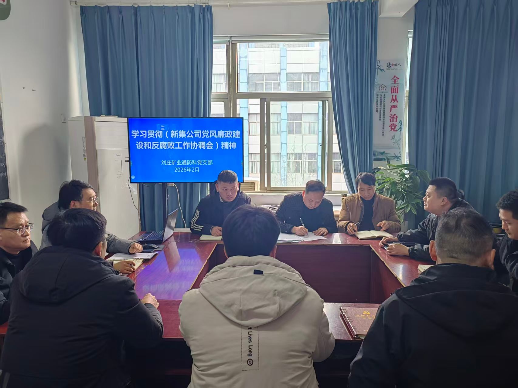 为全面贯彻落实新集公司2026年党风廉政建设和反腐败工作会议部署,近日,通防科党支部书记主持召开专题学习会,组织全体干部职工集中学习会议精神,凝聚廉洁从业共识,筑牢安全生产与廉政建设双防线。