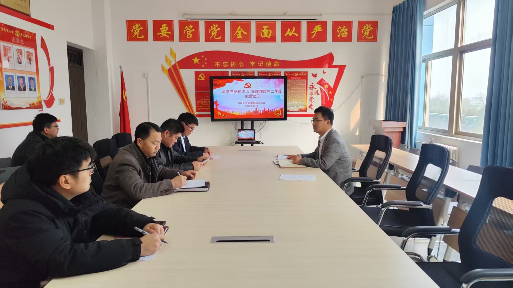 为深入学习贯彻党规党纪,持续深化作风建设,全力冲刺二季度各项生产经营目标,4月13日,刘庄矿业综掘第四党支部组织开展“深学党纪转作风 提质增效冲二季度”主题党日活动,支部党员参加会议。