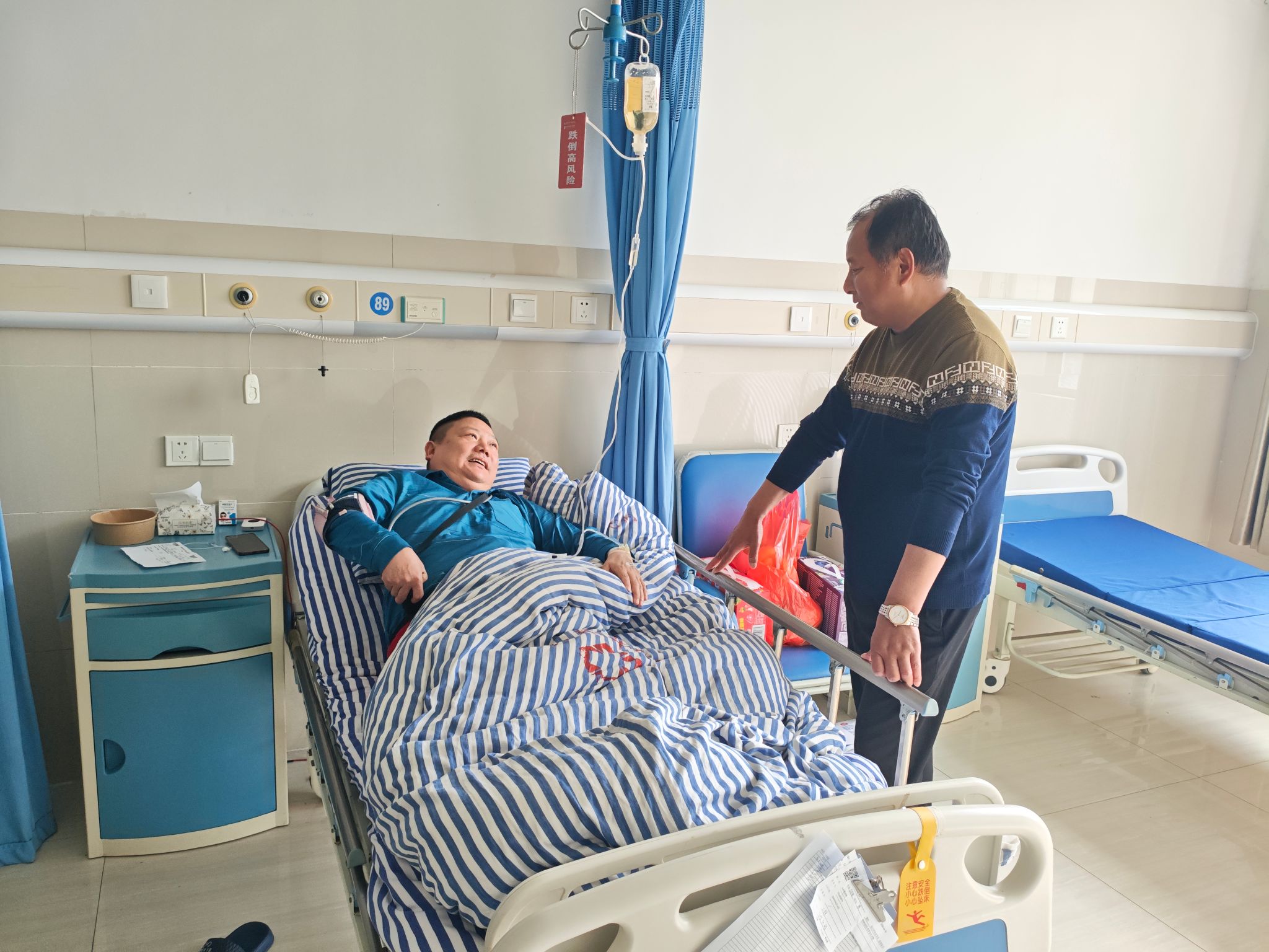 “安心配合治疗,好好休养,等康复后我们随时欢迎你归队!”4月18日,刘庄矿业西区通风抽排党支部书记专程驱车百里,前往淮南新华医院看望因病住院的职工王正怀,为他送上慰问品和支部全体人员的关怀与祝福,用实际行动传递组织温暖。