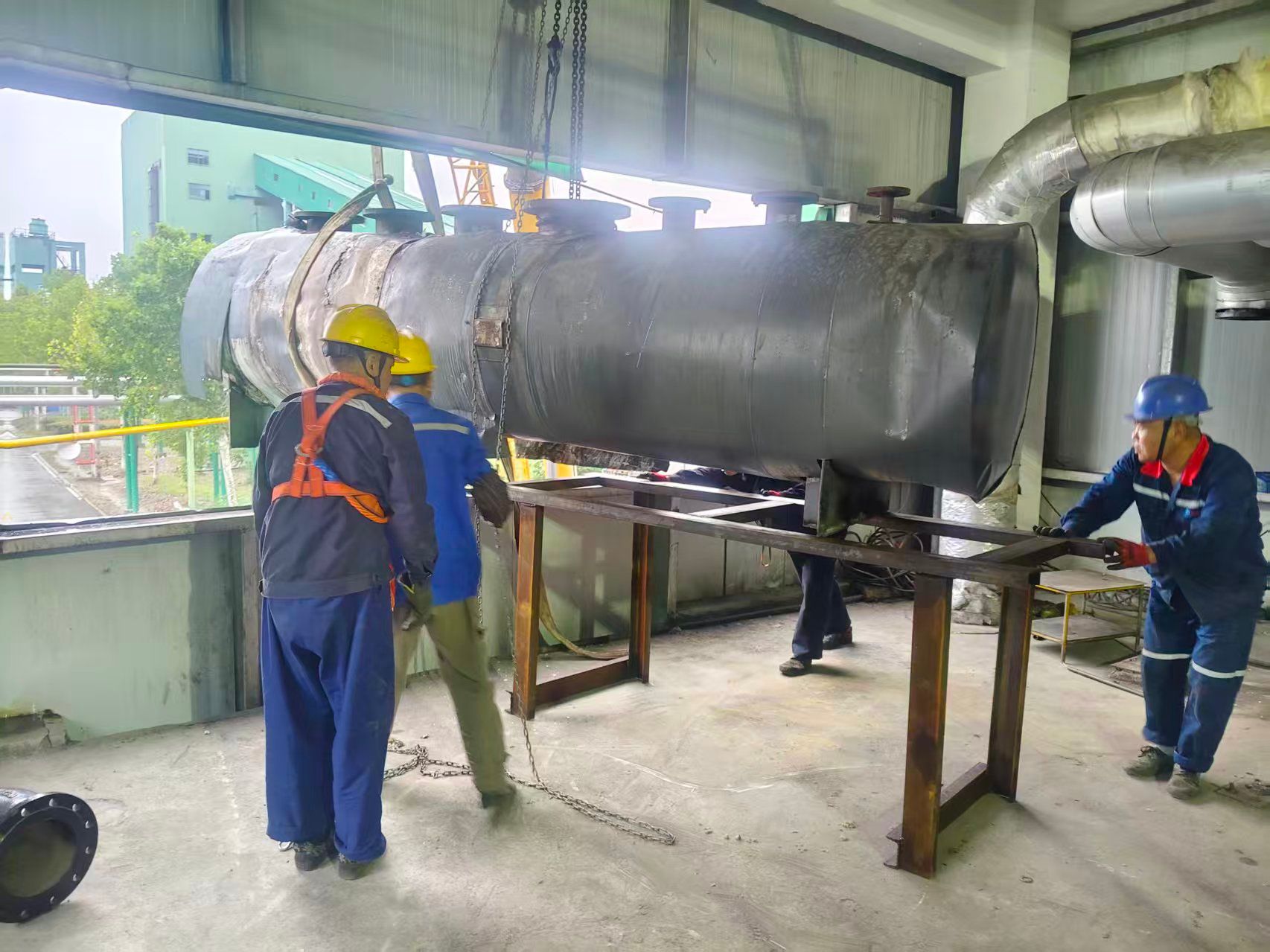 施工方严格按照安全技术措施,先后完成了分汽缸旁通管路的加设与拆除,旧分气缸的拆除、新设备的吊装就位、闸阀及其他附件的安装、气密性试验等一系列工作。整个施工过程中,东区固定队指派管理人员现场跟班,监督施工质量,对每一道工序进行严格把关,确保施工质量与安全万无一失。经过4天的奋战,10月4日下午,新分气缸成功投入试运行,各项参数均符合要求,更换工作圆满完成。