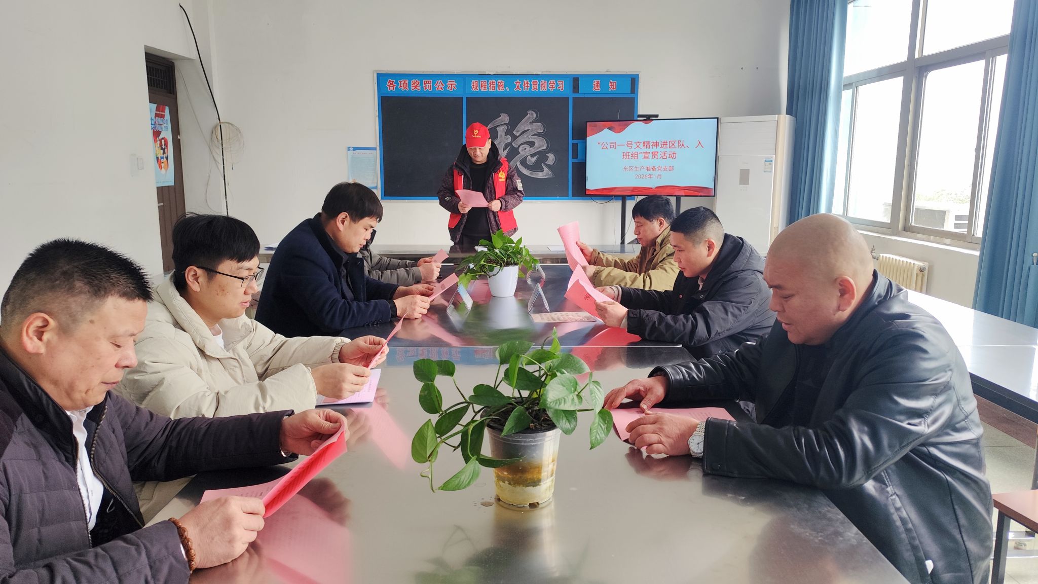 为推动安全理念扎根基层、融入班组,近日,刘庄矿业东区生产准备党支部积极开展“公司一号文精神进区队、入班组”宣贯活动,让安全要求直达基层、深入人心,确保职工知形势、明责任、抓落实。