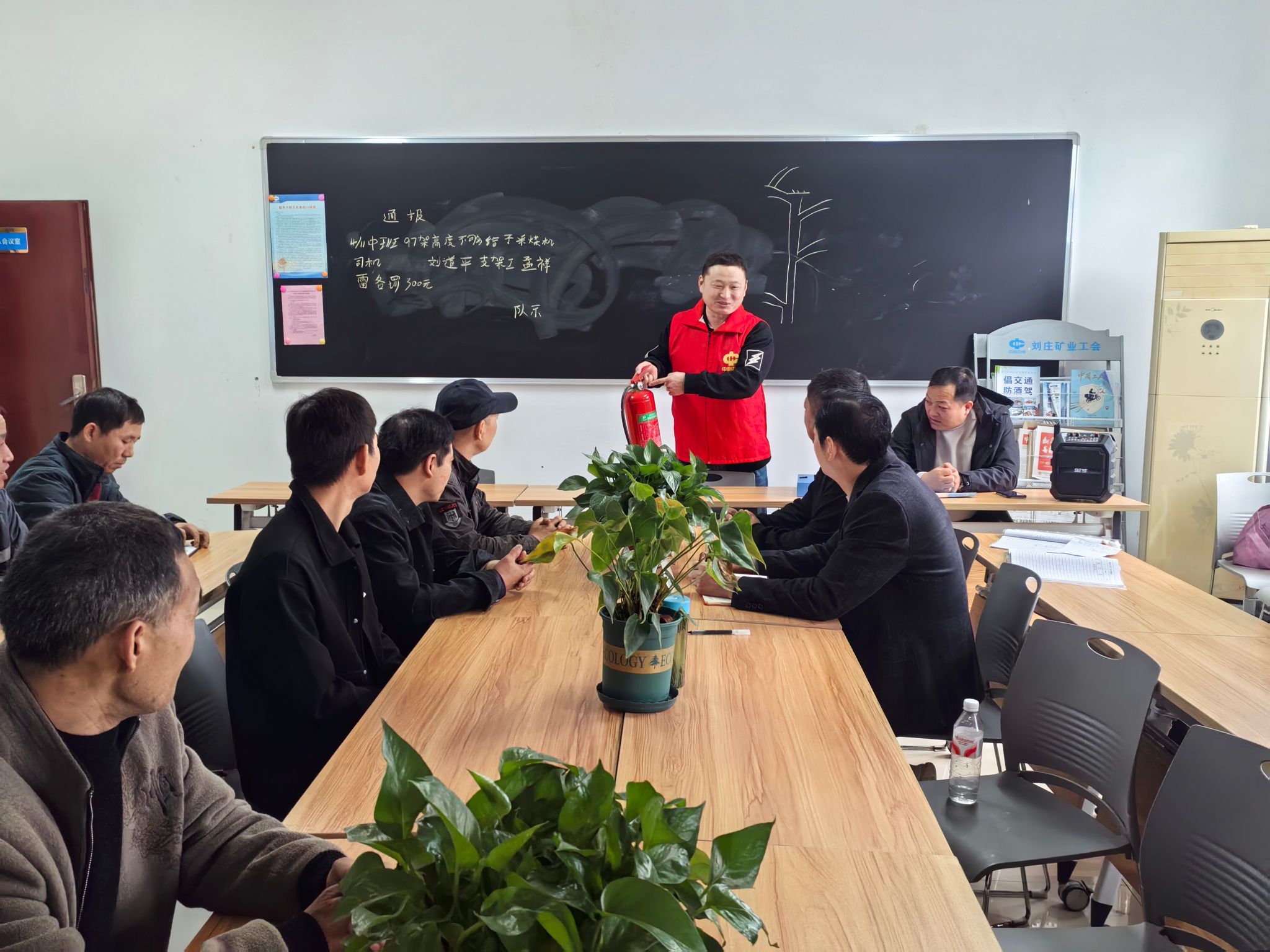 在全国第34个“119”消防安全日来临之际,为紧扣“全民消防,生命至上——安全用火用电”活动主题,切实强化综采一线职工的消防安全意识与应急处置能力。11月9日,刘庄矿业综采一队党支部将消防安全教育融入区队班前会“必修课”,通过“理论宣讲+实操演练”的沉浸式模式,为矿井安全生产筑牢坚实的“防火墙”。