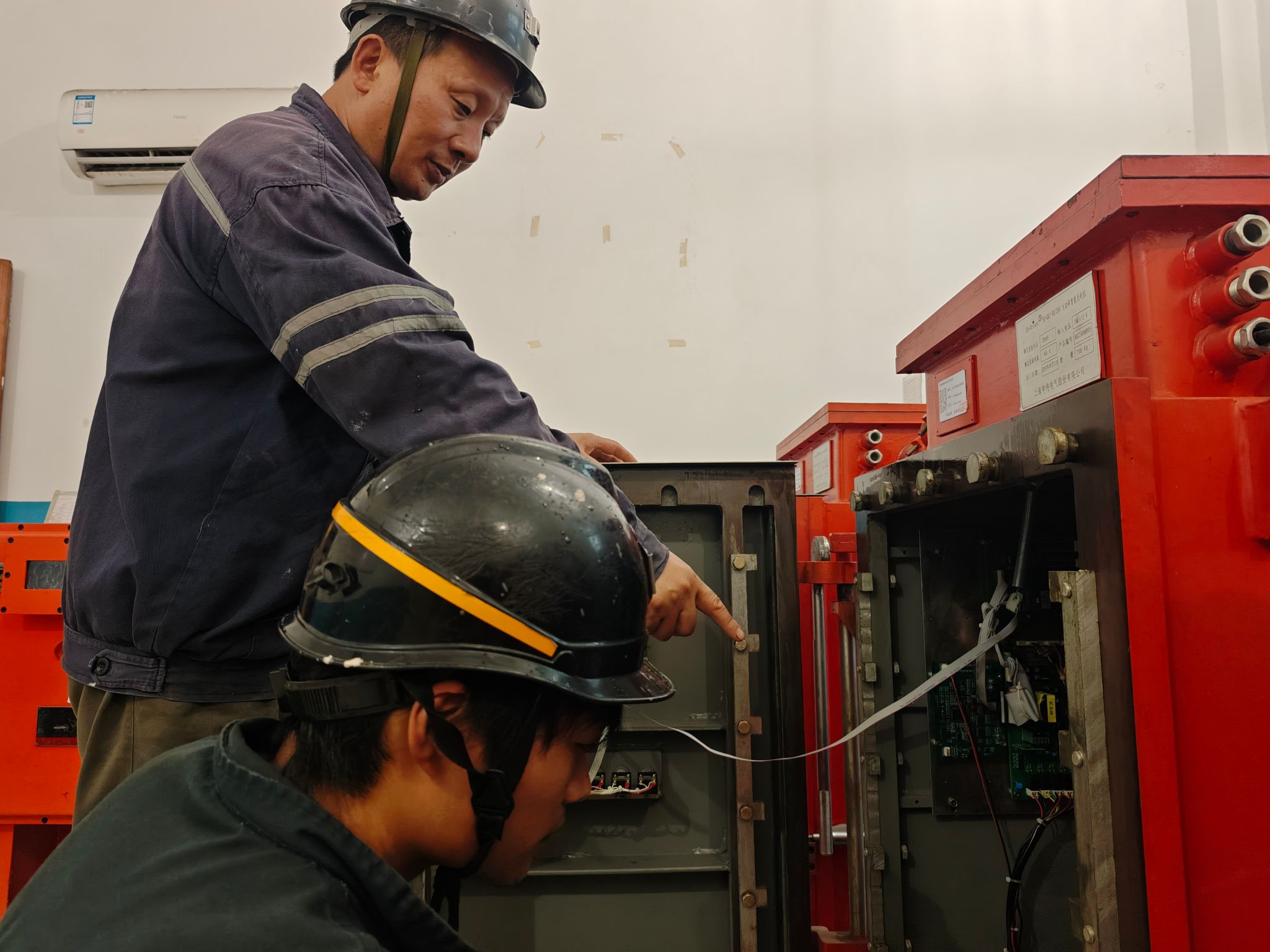 在作业现场,检修人员对电机车的各个部件进行全面细致的检查和维护,包括电机、制动系统、电气线路等关键部位。凭借丰富的经验和专业的技能,不放过任何一个细微的安全隐患,例如:对电机的各项参数进行精准测量;仔细检查制动系统的每一个部件,确保其灵敏可靠;在电气控制柜前,认真排查线路是否存在老化、破损等问题,每一次检测都严谨细致,坚持不遗漏一个隐患点。