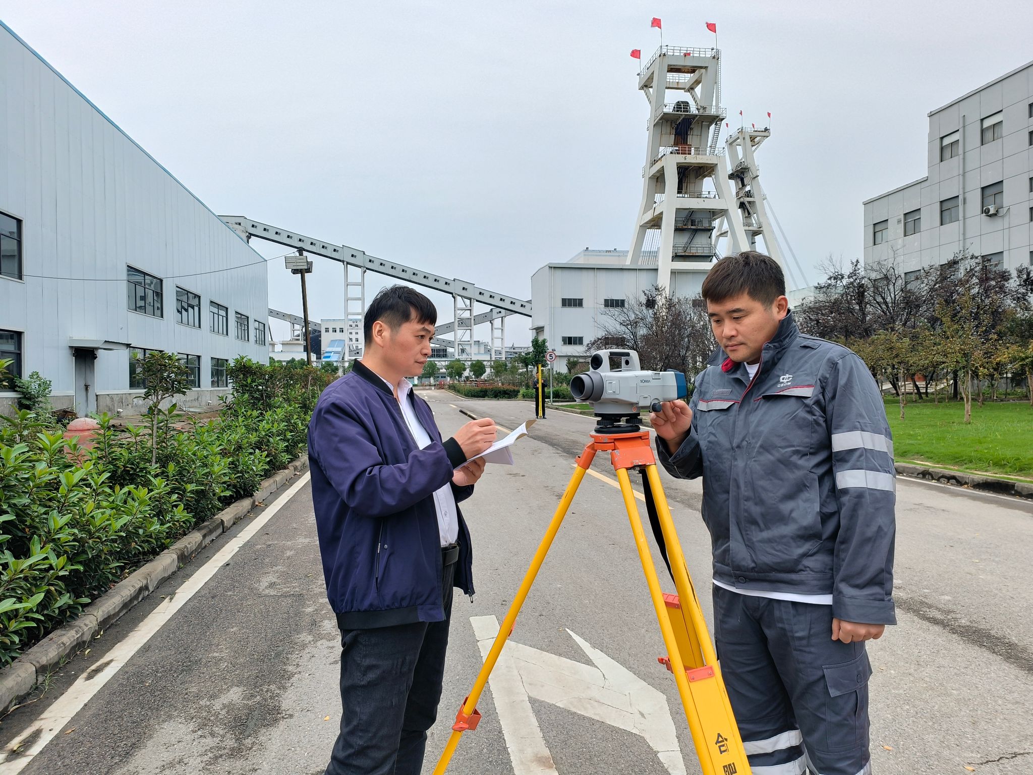 10月23日,利辛矿业主、副井口周围,精密测量仪器、塔尺、三脚架等工具规范排列,来自地测防治水科的4名测量人员同台竞技,围绕测量仪器操作、读数、记录计算等核心技能展开比拼,以专业素养筑牢矿井测量控制安全网。
