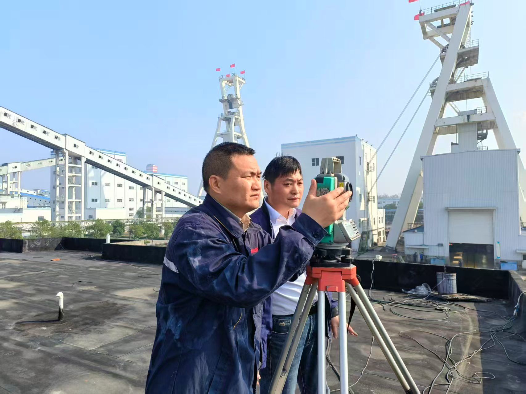 面对这一潜在风险,我矿测量专业人员深知责任重大。他们未雨绸缪,将井架偏斜监测纳入常态化、制度化的安全管理体系。此次监测任务启动前,该矿测量技术人员制定了周密的实施方案,明确了监测周期、技术标准与应急预案。监测现场,测量人员展现出极高的专业素养,他们选用高精度的全站仪、数字水准仪等测量设备,以矿区首级控制网为基准,在特定的监测点上架设仪器。一丝不苟地调平、对准、读数;屏息凝神,捕捉每一个细微的数据变化。通过对井架顶部特定点相对于底部的水平位移进行了反复多次的精确观测与数据比对,确保了所获数据的真实性与可靠性。