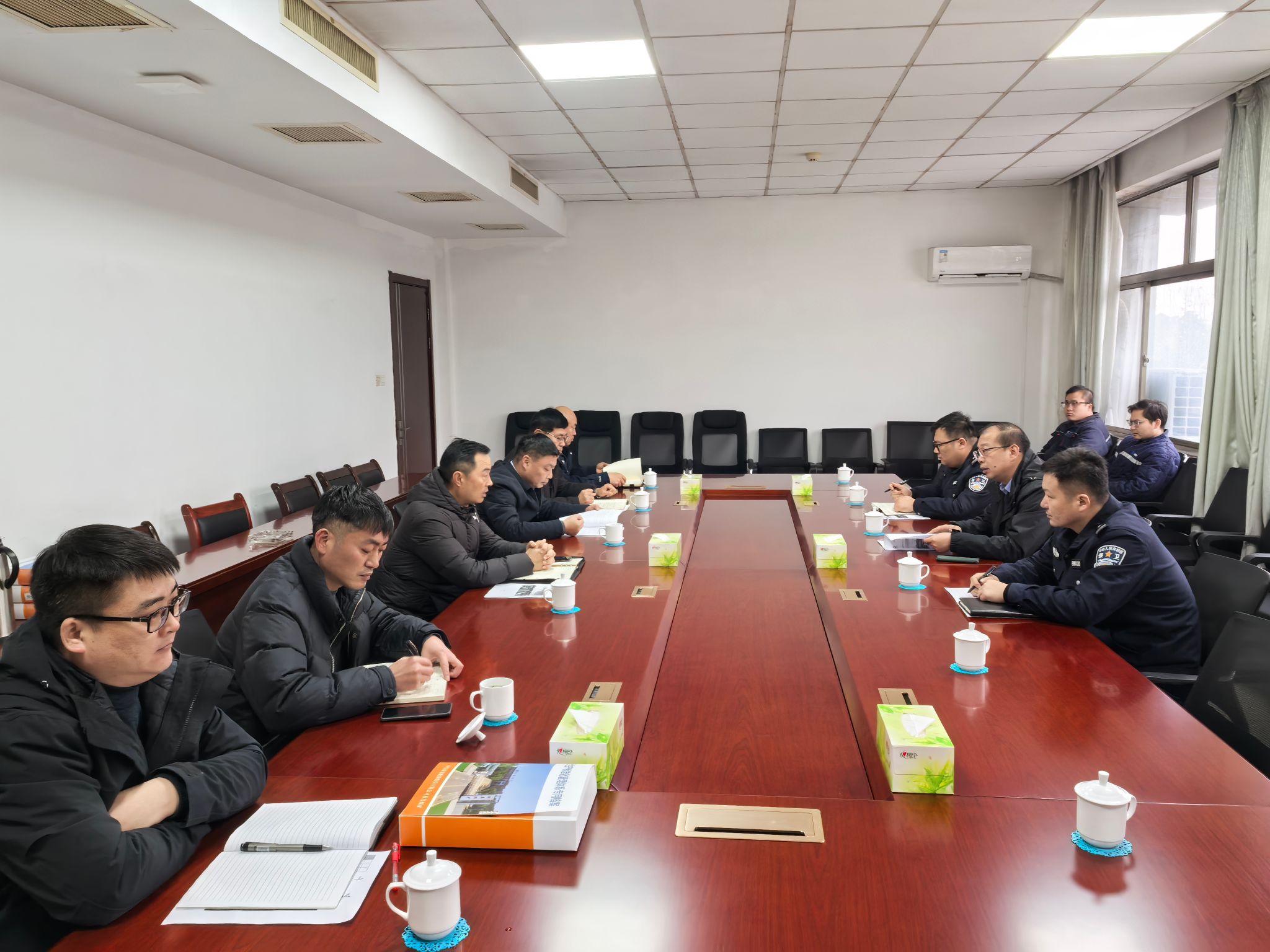 检查组首先在会议室集中查阅2025年度消防安全工作相关材料,重点审阅消防设施维护、隐患排查整治闭环、消防安全宣传、人员安全培训、火工品储存使用管理等关键工作落实情况。