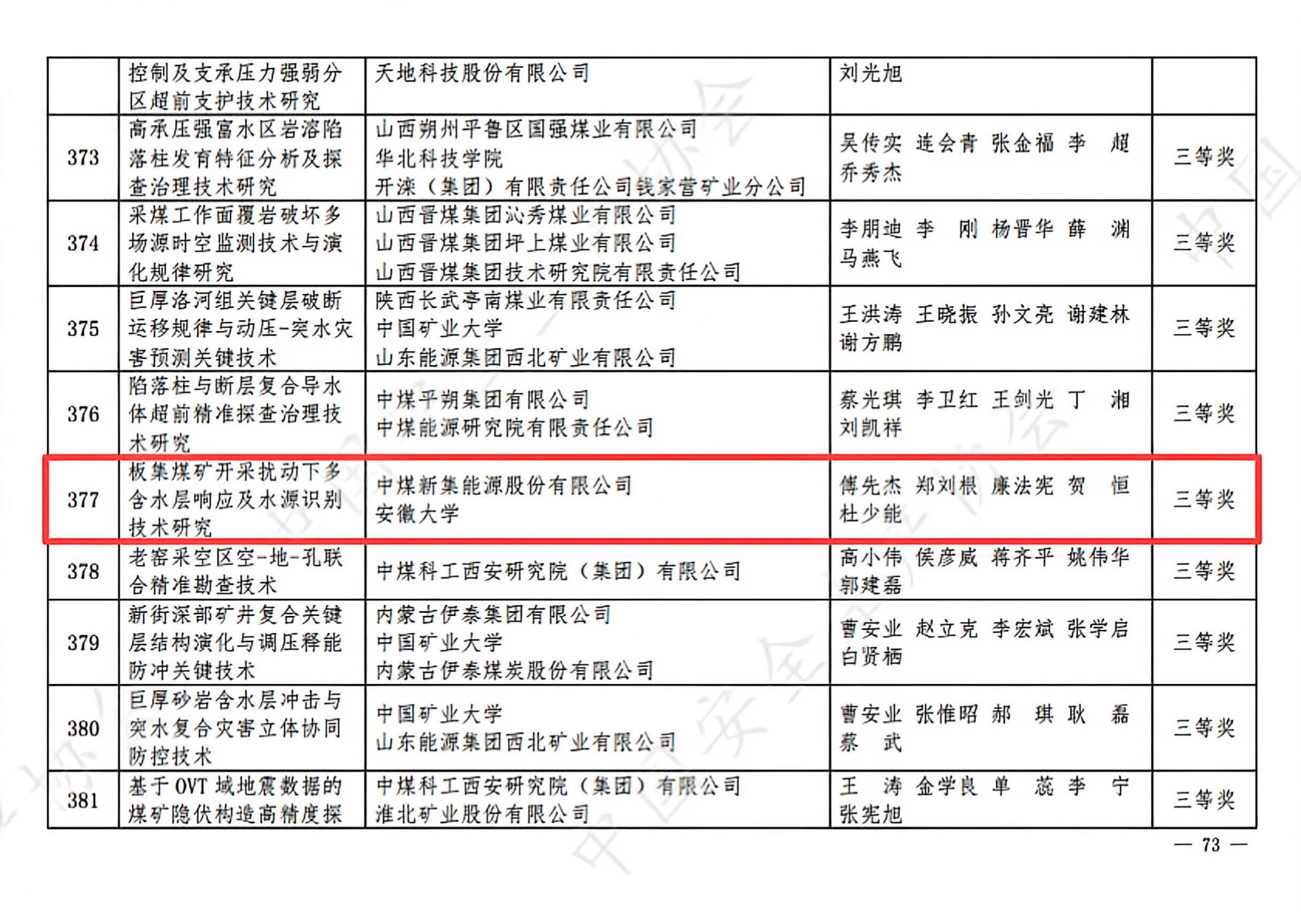 此次获奖,标志着公司在深井灾害防治与水害防控技术研究领域取得了重要突破,体现了企业在安全科技研发与应用方面的扎实成效,为进一步提升煤矿安全保障能力、推动行业技术进步贡献了积极力量。