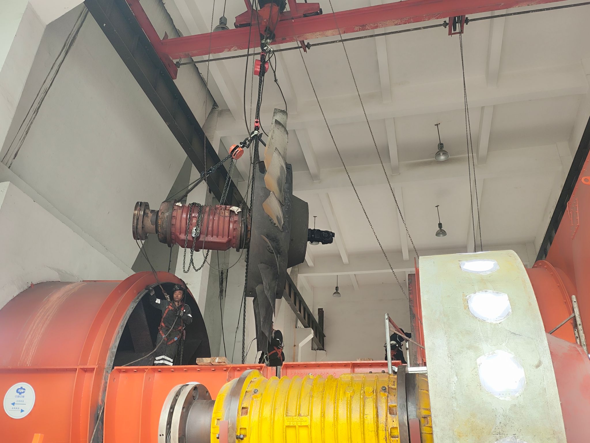 施工期间,现场施工人员不畏挑战、全力以赴,严格按照方案流程有序推进各项操作。矿领导及区队管理人员全程跟班督导,紧盯关键工序与安全要点,及时协调解决施工过程中出现的各类问题;技术人员精准把控拆装精度,对转子定位、间隙调整等核心环节反复校验;施工人员密切配合、规范操作,起吊、拆卸、安装、紧固等每一个步骤都严谨细致、一丝不苟。在全体人员的通力协作下,经过连续十余个小时的紧张作业,新转子精准安装到位。
