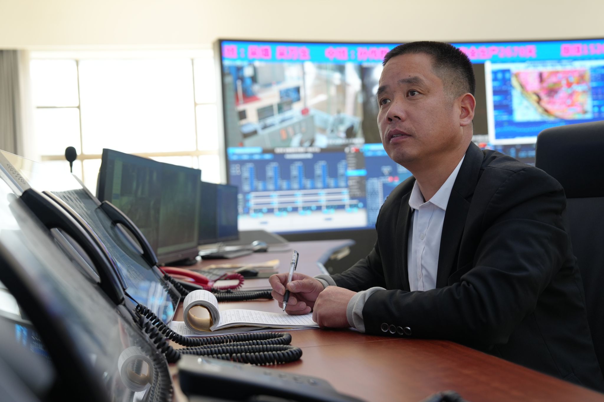 以坚守赴新春 以调度保平安。新春佳节,万家团圆,生产指挥中心依旧灯火通明。这里是矿井能源保供的指挥中枢,统筹井下生产、运输、调度全流程,守护矿井安全、稳定、高效运行。生产调度员郑兆瑞全神贯注紧盯屏幕,密切关注每一组数据、每一台设备运行状态。从事生产调度八年,今年虽无法与家人守岁,但看到能源生产平稳有序、保供任务稳步推进,他深感这班岗守得值、守得光荣。工作中,他紧盯生产组织、设备负荷、安全预警,遇异常第一时间协调处置,以专注坚守为能源保供保驾护航。