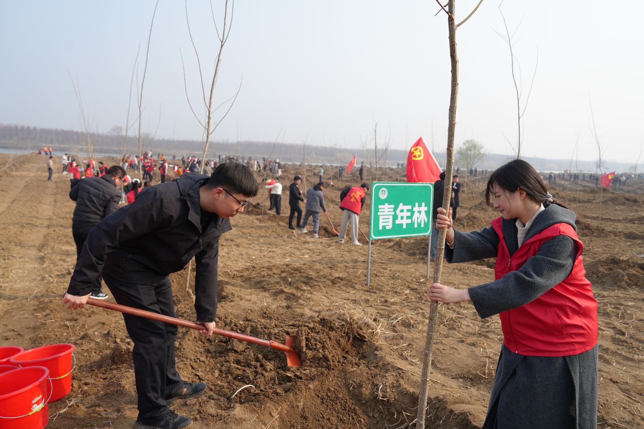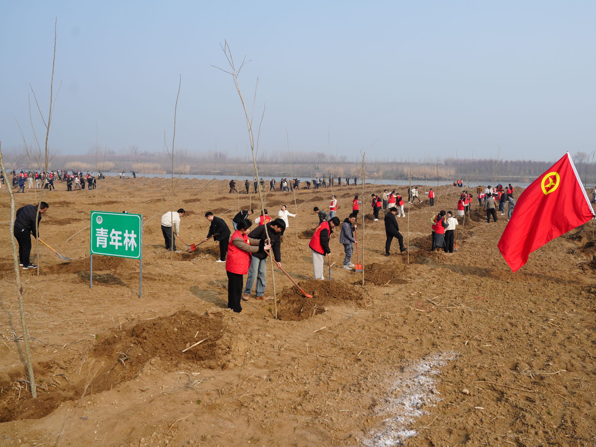 3月12日上午,在第48个植树节来临之际,利辛矿业团委组织青年团员前往茨淮新河阜阳段,参加阜阳市团市委组织的“植绿向新、共赴春光”主题植树活动,以实际行动践行“绿水青山就是金山银山”的“两山理念”,传递绿色文明,彰显青年担当。