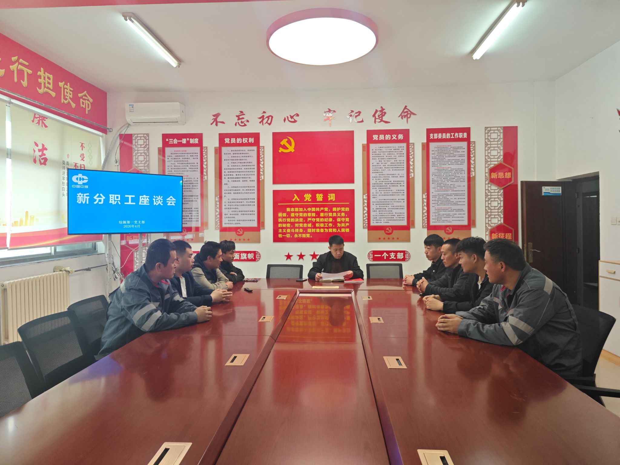 座谈现场氛围温馨融洽,党支部书记首先向新员工表示热烈欢迎,一句句暖心的问候、一次次真诚的交流,瞬间拉近了与新员工的距离。随后,他结合新员工的需求,不仅详细介绍了企业的各项管理要求,还全面讲解了涵盖生活、工作等方面的福利政策,让新员工对企业有更清晰的认知。交流过程中,书记主动关心新员工的实际情况,围绕薪资收入、日常生活、休假安排、后勤服务保障等大家关心的话题展开深入沟通,细致询问每个人的适应情况与实际需求。面对新员工提出的关于薪资待遇、工作环境、生活保障等方面的疑问,他耐心倾听、逐一回应,消除大家的顾虑。最后,书记还对新员工提出殷切期望,鼓励大家珍惜来之不易的岗位机会,在实践中坚持 “学中干、干中学”,不断提升职业技能,以积极饱满的状态投身到工作当中。