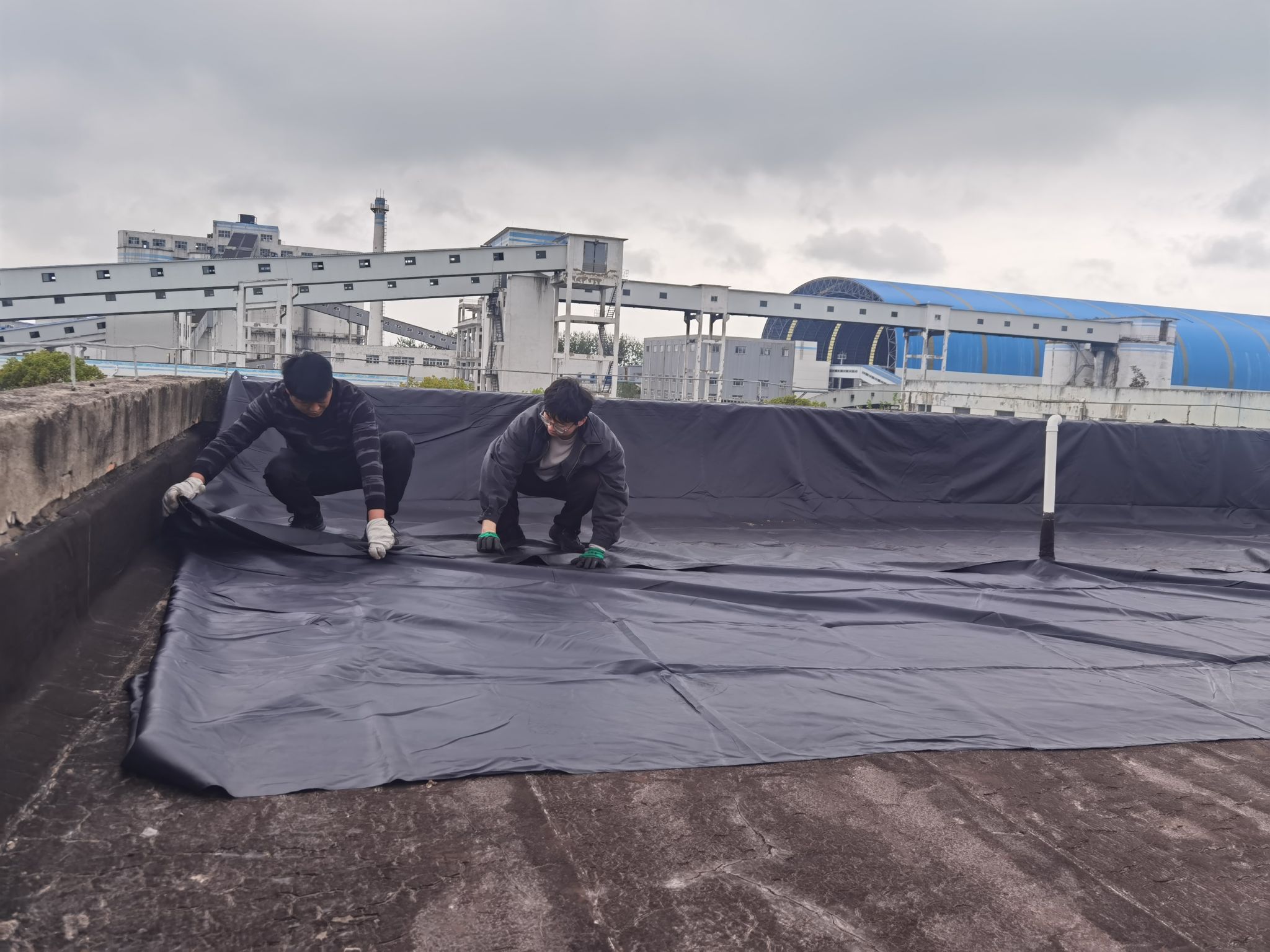 行动中,支部书记带领党员骨干和职工群众,对楼顶进行全面清理排查。大家集思广益,结合矿井实际,提出将废旧风筒布进行二次加工处理,用于楼顶临时覆盖的创新方案。在清理完楼顶杂物后,党员职工合力将加工好的风筒布严密铺设覆盖,并对接缝处进行胶水封闭处理,有效引导雨水快速汇入下水管道,彻底消除了楼顶积水带来的安全风险和文明卫生问题。